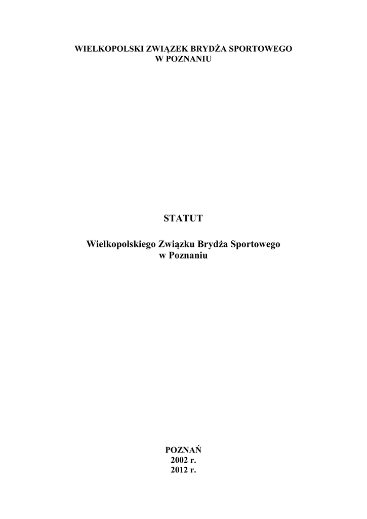 Statut WZBS - Wielkopolski Związek Brydża Sportowego