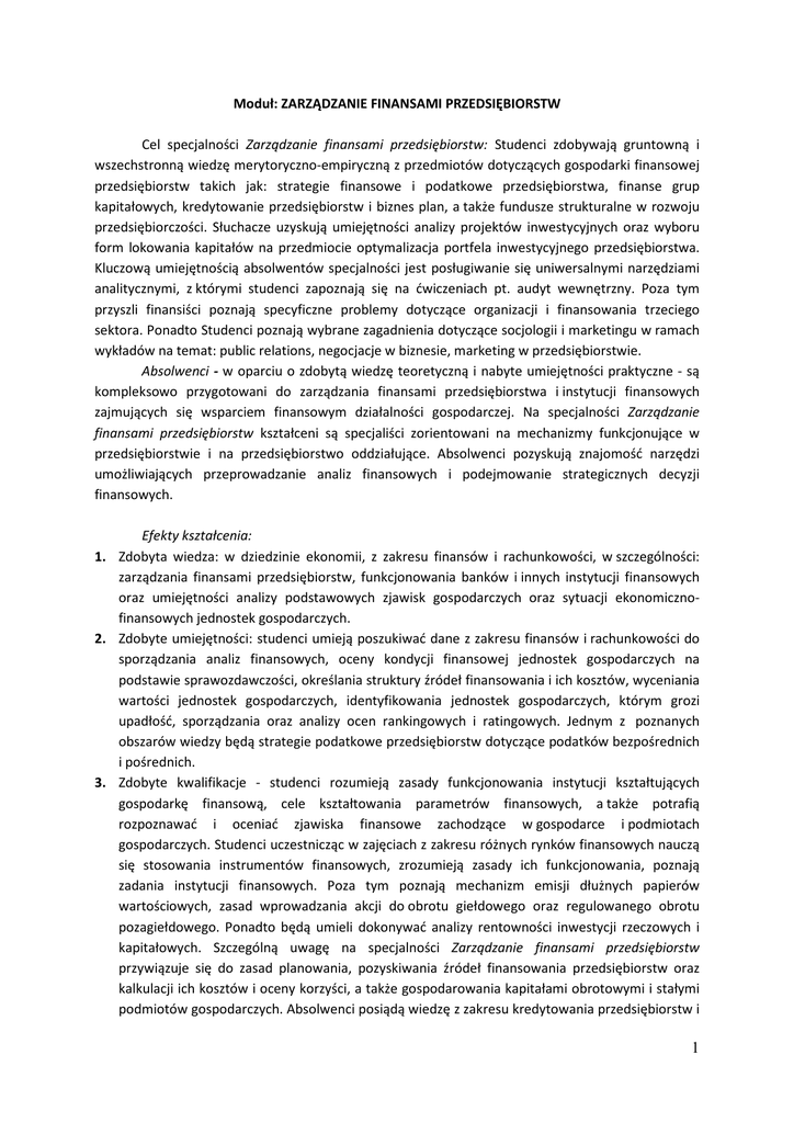 opis specjalności - zarządzanie finansami przedsiębiorstw