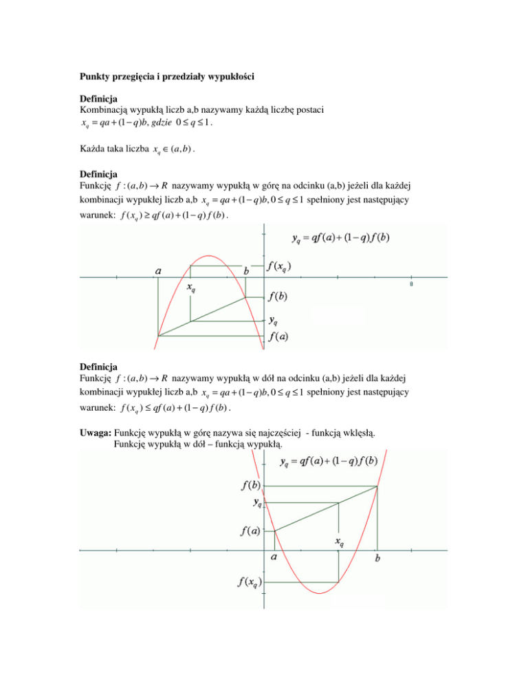 Punkty przegięcia i przedziały wypukłości Definicja Kombinacją