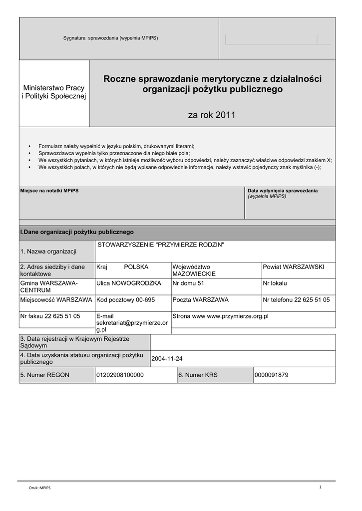 Roczne sprawozdanie merytoryczne z działalności organizacji