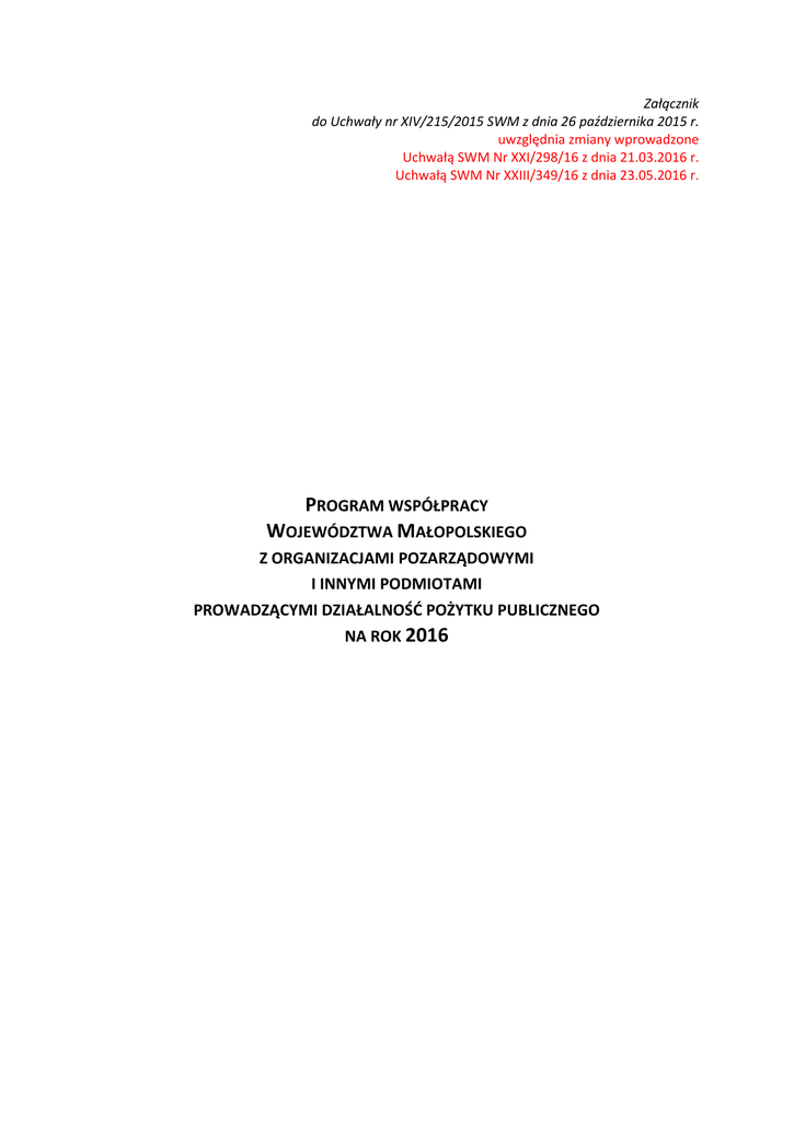 program współpracy województwa małopolskiego z organizacjami