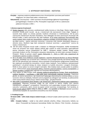 2. WYPRAWY KRZYŻOWE – NOTATKA