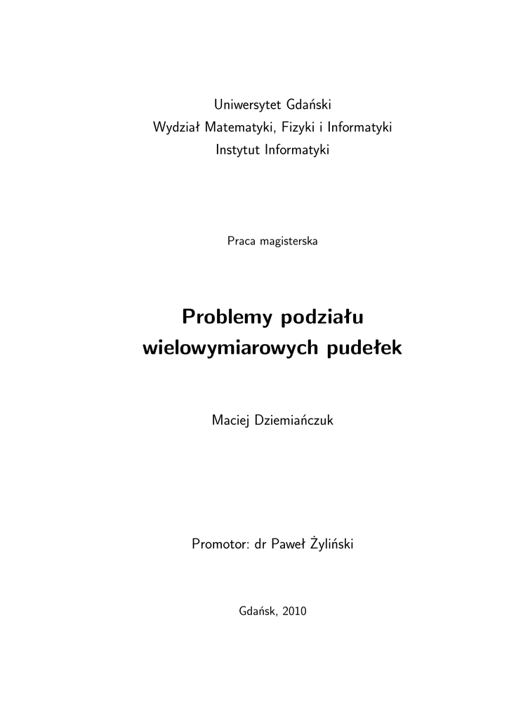 • W ostatnim rozdziale 4 przedstawiamy wyniki Bowera i Micheala [1] z roku 2004 dotyczące pokrycia wielowymiarowych pudełek dwoma rodzajami