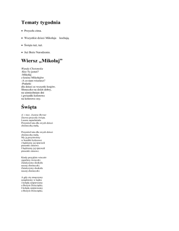 Tematy tygodnia Wiersz „Mikołaj” Święta