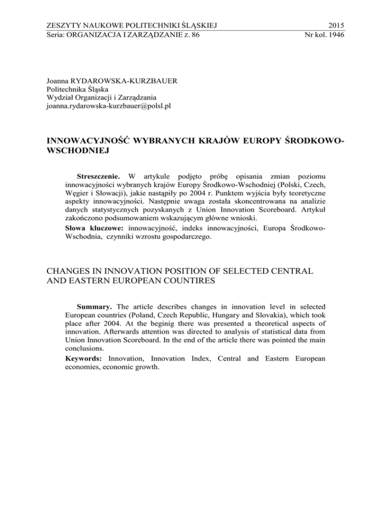 innowacyjność wybranych krajów europy środkowo