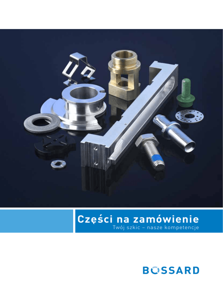 ˛ ´ na zamówienie Czesci Twój szkic – nasze kompetencje Cze ˛ ści Bossard na zamówienie – Twój rysunek – nasze kompetencje Kompetentny partner Sprawdzona jakosc Maksymalne bezpieczeństwo zaopatrzenia Optymalny stosunek ceny do wydajności Kompetentny partner Na świecie istnieją tysiące producentów wytwarzających części na zamówienie w różnych technologiach. Problemem nie jest zatem znalezienie producenta, lecz odfiltrowanie tych producentów, którzy wytwarzają swoje produkty w sposób ciągły, z zachowaniem dobrej jakości, na czas, a mimo to po niskich kosztach. Codziennie specjaliści Bossard przemierzają świat, aby znajdować dla klientów najlepsze z możliwych źródeł zaopatrzenia, oceniać je i stale ich doglądać. Sprawdzona jakość Wszyscy dostawcy, tak obecni, jak i nowi, są ciągle poddawani rygorystycznym badaniom jakościowym. Zapewnienie wymaganej jakości następuje poprzez regularne audyty procesów produkcji oraz specjalistyczne badania we własnych, akredytowanych laboratoriach badawczo-pomiarowych Bossard. Dopiero po pomyślnie zakończonych badaniach następuje dopuszczenie dostawcy i produktu do stosowania. Kontrola wejściowa potwierdza, że każda dostawa dokładnie odpowiada wymaganiom klienta. Maksymalne bezpieczeństwo zaopatrzenia Obsługa różnych terminów ponownych dostaw, od kliku dni po kilka miesięcy, stanowi podstawową kompetencję firmy Bossard. Dzięki ogólnoświatowej sieci zaopatrzenia, najnowocześniejszej logistyce w całym łańcuchu wartości dodanej oraz dziesięcioleciom wiedzy technologicznej, firma Bossard dysponuje niezmiennie wysoką gotowością w zakresie dostaw. Natomiast zapobiegliwe, indywidualne utrzymywanie prowadzenie stanów magazynowych zapewnia nieprzerwane dostawy nawet w okresach szczytowego zapotrzebowania. Bossard oznacza bezpieczeństwo zaopatrzenia tak w zakresie części normatywnych, jak i produkowanych na zamówienie. Optymalny stosunek ceny do wydajności Cena nie jest tym samym co koszt! Jeśli rzekomo tanie części są przyczyną dodatkowych nakładów podczas kontroli lub montażu, może to prowadzić do problemów z obróbką, a jeśli wymaganych artykułów wręcz brakuje, powodują one często wielokrotny wzrost planowanych kosztów. Przystępne ceny i krótkie terminy dostaw często stoją ze sobą w sprzeczności. Podobnie często wysoka jakość jest powiązana ze zbyt wysoką ceną. Firma Bossard potrafi sprostać temu wyzwaniu dzięki przemyślanej, ogólnoświatowej sieci zakupów od audytowanych i certyfikowanych dostawców, w której doskonale uzupełniają się źródła europejskie i azjatyckie. Rezultat: najwyższa jakość produktu po rynkowych cenach, z szybką dostawą z magazynu firmy Bossard. Części na zamówienie I BOSSARD 3 Cze ˛ ści Bossard na zamówienie – elementy toczone i frezowane 1 2 Elementy toczone i frezowane Gdy wymagana jest wysoka precyzja, niewielkie tolerancje i skomplikowane kształty, warto sięgnąć po obróbkę skrawaniem przez toczenie, frezowanie i wiercenie. Metody te nadają się zarówno do prototypów, jak i wszystkich wielkości serii, od najmniejszych po bardzo duże. 3 4 Materiały: ■■ Wszystkie rodzaje stali podatnej na obróbkę skrawaniem ■■ Metale nieżelazne i tworzywa sztuczne ■■ Wiele gatunków stali specjalnych Wymiary: ■■ średnice od 0,5 do 600 mm ■■ długości od 2 do 650 mm 5 6 7 8 Ilości: od prototypu po produkcję wielkoseryjną, w zależności od rodzaju części i typu maszyny. 1. Tarcza Ø 80 x 19 mm, Stop aluminium 2. Nakrętka zaworowa Ø 33 x 14 mm, Stal nierdzewna 9 10 3. Łożysko Ø 30 x 45 mm, mosiądz 4. Łącznik typu L 170 x 24 mm, Stop aluminium 5. Kotwa Ø 45 x 21 mm, Stal automatowa 6. Uchwyt Ø 73 x 25 mm, Stal nierdzewna 7. Kołnierz z tworzywa sztucznego Ø 31 x 30 mm, z gwintem calowym, PMMA 11 12 8. Mufa Ø 62 x 68 mm, Stal nierdzewna 9. Dźwignia typu L 50 x 34 mm, szlifowana na gładko, Stop aluminium 10.Kleszcze Ø 12 x 9 mm, Mosiądz pokryty miedzią 11.Złącze Ø 25 x 65 mm, Stal nierdzewna 12.Prowadnica typu L 40 x 30 mm, stop aluminium anodyzowany na czarno 4 BOSSARD I Części na zamówienie Cze ˛ ści Bossard na zamówienie – elementy wytłaczane na zimno Elementy wytłaczane na zimno Materiał, kształt, tolerancje wykonania i podobne z góry określone wielkości decydują o tym, czy element wykonywany na zamówienie można wyprodukować ekonomiczną metodą wytłaczania na zimno. Ponieważ do obróbki plastycznej wymagane są specjalne narzędzia, ilości muszą z reguły być odpowiednio duże. W zależności od geometrii części i materiału, możliwe jest również wyprodukowanie ich w mniejszej ilości. 1 2 3 4 5 6 7 8 9 10 11 12 Materiały: ■■ Różne rodzaje stali ■■ Stale nierdzewne A2, A4 ■■ aluminium, mosiądz ■■ Stale specjalne i tytan na zamówienie Ilości: Elementy wytłaczane na zimno i wielostopniowo od ok. 50 000 szt., w zależności od kształtu i wielkości części Elementy obrabiane plastyczne na gorąco Materiały: ■■ Wszystkie typowe materiały, w tym stale szlachetne odporne na rdzę i kwasy ■■ Materiały specjalne np. Nymonic na zamówienie Ilości: od prototypu do produkcji seryjnej 1. Śruba z łbem młoteczkowym M 20 x 145 mm, stal kuta 2. Zaślepka M 22 x 15 mm, Stal ocynkowana 3. Kołek do pozycjonowania Ø 6-h11 x 30 mm, stal 8,8 wytłaczana na zimno 4. Śruba dociskowa M 30 x 120 mm, Głowica 50 x 50 mm, formowana na gorąco 5. Śruba podwójna Ø 18 x 47 mm, stal 6. Śruba z cienkim trzpieniem M 8 x 80 mm, stal 8,8 7. Śruba regulacyjna M 6 x 46 mm, Stal nierdzewna A4 8. Śruba do instalacji solarnych z gwintem frezowanym, M10 i M12, Stal nierdzewna A2 9. Śruba mocująca M6 x 11 mm z łbem sześciokątnym i gniazdem sześciokątnym, stal 8.8 10.Śruba typu T-Bolt M6 x 62 mm, b 48 mm, Stal nierdzewna A2 11.Kołek z końcówką czworokątną M5 x 68 mm, b 13 mm, stal 8,8 12.Tuleja mimośrodowa Ø 1
