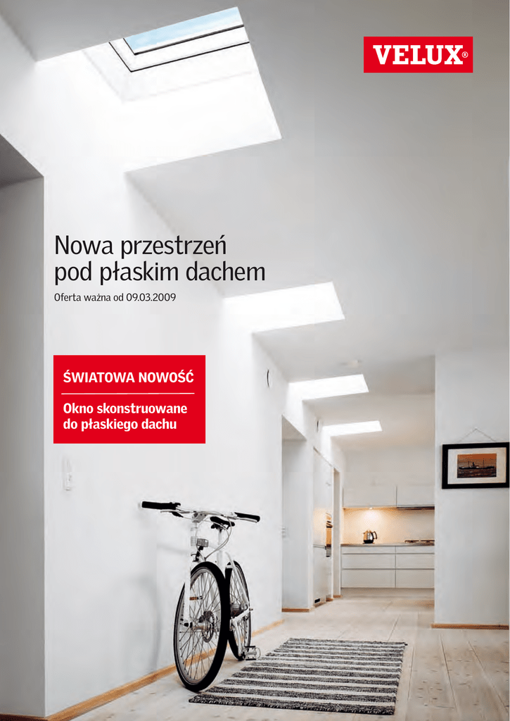 Nowa przestrzeń pod płaskim dachem Oferta ważna od 09.03.2009 Światowa Nowość Okno skonstruowane do płaskiego dachu Stworzyliśmy pierwsze okno do płaskiego dachu. Okna VELUX do płaskich dachów pozwalają uzyskać nową jakość przestrzeni w pokoju, kuchni, łazience czy przedpokoju pod płaskim dachem doświetlając je naturalnym światłem. Okna VELUX do płaskich dachów oferują jednocześnie tak wysokie parametry izolacyjne, estetyczne, funcjonalne jak najlepsze okna pionowe. Mogą być wyposażone w akcesoria przeciwsłoneczne i dekoracyjne oraz system elektrycznego sterowania io-homecontrol®. Otwórz swoje wnętrza Komfort i bezpieczeństwo Najwyższa jakość konstrukcji i wykonania, gwarantująca wieloletnie bezobsługowe i bezpieczne użytkowanie łączy okna VELUX do płaskich dachów ze znanymi od ponad 60 lat oknami do poddaszy VELUX. Klejona szyba od wewnątrz • bezpieczeństwo w przypadku stłuczenia • wysoka dźwiękoszczelność • ochrona przed promieniami UV Przestrzeń międzyszybowa wypełniona argonem • ochrona przed utratą ciepła Szyby bezpieczne w standardzie Wszystkie okna do płaskich dachów VELUX wyposażone są w bezpieczne szyby energooszczędne z powłoką łatwo zmywalną. Hartowana szyba od zewnątrz • wysoka odporność na czynniki zewnętrzne • powłoka niskoemisyjna • powłoka łatwo zmywalna Sterowanie radiowe io-homecontrol® standardem wszystkich produktów VELUX otwieranych elektrycznie • Programownie otwarcia w rytmie dopasowanym do twojego dnia. • Czujnik deszczu w standardzie. • Otwieranie i zamykanie z dowolnego miejsca w budynku. • Sterowanie kompatybilne z wyrobami firm: Assa Abloy, Honeywell, Hörmann, Niko, Renson, Somfy, Windowmaster. Produkty ze sterowaniem radiowym io-homecontrol® to początek domu inteligentnego. • Kodowanie systemu gwarantujące bezpieczeństwo. io-homecontrol® to zaawansowana i bezpieczna bezprzewodowa technologia radiowa. Produkty ze znakiem io-homecontrol® są łatwe w montażu, komunikują się ze sobą podnosząc komfort i bezpieczeństwo oraz obniżają zużycie energii. www.io-homecontrol.com VELUX 3 Okna do płaskich dachów Okno wykonane jest z profili z tworzywa sztucznego, przeznaczone do dachów o kącie nachylenia 0-15°. Dostępne jest w dwóch wersjach: • Okno do płaskich dachów CFP – nieotwierane • Okno INTEGRA do płaskich dachów CVP – uchylane za pomocą elektrycznego siłownika sterowanego technologią radiową io-homecontrol®. Okno składa się z dwóch elementów: Kopuły z wysokiej jakości akrylu, zabezpieczającej okno przed śniegiem i deszczem, oferowanej w dwóch wersjach: • przeźroczysta • matowa Okna (rama i skrzydło) wykonanego z twardego PCV. Wysoki poziom izolacyjności osiągnięto wypełniając profile ramy pianką polistyrenową. Współczynnik przenikania ciepła dla całej konstrukcji okna U=1,4 w/m2K to najlepszy wynik w tej klasie okien. Montaż systemu opisany jest w załączonej instrukcji montażu i możliwy jest do wykonania przez każdego instalatora wykonującego płaskie pokrycia i obróbki dachowe. Rysunek CAD do pobrania: www.velux.pl/Produkty/Plaski-dach VELUX 5 System do płaskich dachów z oknem do poddaszy System oparty na oknach do poddaszy, przeznaczony do dachów o nachyleniu 0-30°. Dostępny jest z czterema typami okien: • GGL 3073 okno drewniane • GGL INTEGRA okno drewniane sterowane radiowo • GGU 0073 okno w technologii drewnianego rdzenia pokrytego poliuretanem • GGU INTEGRA okno w technologii drewnianego rdzenia pokrytego poliuretanem sterowane radiowo Składa się z trzech elementów: Okna wyposażonego od wewnątrz w szybę bezpieczną, a od zewnątrz w szybę hartowaną z powłoką łatwo zmywalną. Kołnierza aluminiowego łączącego okno z podstawą i materiałem pokryciowym. Prefabrykowanej izolowanej podstawy o kącie nachylenia 19º Montaż systemu opisany jest w załączonej instrukcji montażu i możliwy jest do wykonania przez każdego instalatora wykonującego płaskie pokrycia i obróbki dachowe. Rysunek CAD do pobrania: www.velux.pl/Produkty/Plaski-dach VELUX 7 VELUX Polska Sp. z o.o. ul. Muszkieterów 15A 02-273 Warszawa tel. (22) 33 77 000 fax (22) 33 77 090 e-mail: [email protected] www.VELUX.pl Cennik kategorii Najlepszy w ik Uw=1,4 współczynn Okna do płaskich dachów VELUX Ceny brutto (22% VAT) 60 x 60 060060 80 x 80 080080 60 x 90 060090 90 x 90 090090 100 x 100 100100 120 x 120 120120 1424,59 1738,00 1700,00 2074,00 1626,23 1984,00 1874,59 2287,00 2063,11 2517,00 2661,48 3247,00 1431,96 1747,00 1716,39 2094,00 1641,81 2003,00 1895,08 2312,00 2085,24 2544,00 2692,62 3285,00 Okno otwierane elektrycznie, sterowane falami CVP + ISD 0000 radiowymi z kopułą akrylową przeźroczystą, Uo = 1,4 3191,81 3894,00 3466,40 4229,00 3375,41 4118,00 3600,00 4392,00 3861,48 4711,00 4606,56 5620,00 3199,18 3903,00 3482,79 4249,00 3390,99 4137,00 3620,49 4417,00 3883,61 4738,00 4637,70 5658,00 Kod produktu CFP + ISD 0000 Maksymalny wymiar otworu w dachu w cm Okno nieotwierane z kopułą akrylową przeźroczystą, Uo = 1,4 Okno nieotwierane z kopułą akrylową matową, CFP + ISD 0100 Uo = 1,4 Okno otwierane elektrycznie, sterowane falami CVP + ISD 0100 radiowymi z kopułą akrylową matową, Uo = 1,4 10 lat Gwarancja – System oparty na oknach do poddaszy termin dostawy 10 dni roboczych Kod produktu Ceny brutto (22% VAT) Maksymalny wymiar otworu w dachu w cm 60 x 116 C04 80 x 116 M04 100 x 116 P04 120 x 135,3 S06 140 x 180,2 U10 GGL SC0X1 Okno GGL z szybą bezpieczną, podstawa ECX, kołnierz, operowanie manualne 1960,65 2392,00 2115,57 2581,00 2366,40 2887,00 2615,57 3191,00 3731,15 4552,00 GGL SC0X3 Okno GGL z szybą bezpieczną, podstawa ECX, kołnierz, sterowanie elektryczne 3236,88 3949,00 3391,80 4138,00 3642,62 4444,00 3891,80 4748,00 5007,38 6109,00 GGU SC0X1 Okno GGU z szybą bezpieczną, podstawa ECX, kołnierz, 2068,03 2523,00 operowanie manualne 2233,61 2725,00 – – 2770