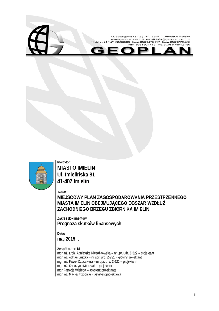 Inwestor: MIASTO IMIELIN Ul. Imielińska 81 41-407 Imielin Temat: MIEJSCOWY PLAN ZAGOSPODAROWANIA PRZESTRZENNEGO MIASTA IMIELIN OBEJMUJĄCEGO OBSZAR WZDŁUŻ ZACHODNIEGO BRZEGU ZBIORNIKA IMIELIN Zakres dokumentów: Prognoza skutków finansowych Data: maj 2015 r. Zespół autorski: mgr inż. arch. Agnieszka Niezabitowska – nr upr. urb. Z-322 – projektant mgr inż. Adrian Luszka – nr upr. urb. Z-381 – główny projektant mgr inż. Paweł Czuczwara – nr upr. urb. Z-323 – projektant mgr inż. Katarzyna Matusiak – projektant mgr Patrycja Wieleba – asystent projektanta mgr inż. Maciej Niżborski – asystent projektanta 1 Miejscowy plan zagospodarowania przestrzennego miasta Imielin obejmującego obszar położony wzdłuż zachodniego brzegu Zbiornika Imielin Prognoza skutków finansowych. Spis treści: 1. 2. 3. 4. 5. 6. 7. 8. 9. Przedmiot i cel opracowania. Podstawa opracowania. Schemat opracowania prognozy. Metoda sporządzania prognozy skutków finansowych. Prognoza wpływu ustaleń planu na dochody własne miasta. Wpływy z opłat adiacenckich. Prognoza wpływu ustaleń planu na podatki od nieruchomości. Dochody związane z obrotem nieruchomościami miasta. Opłaty i odszkodowania, o których mowa w art. 36 ustawy opizp. Prognoza wydatków związanych z realizacją inwestycji z zakresu infrastruktury technicznej, należących do zadań własnych miasta. 10. Podsumowanie i wnioski. 2 Miejscowy plan zagospodarowania przestrzennego miasta Imielin obejmującego obszar położony wzdłuż zachodniego brzegu Zbiornika Imielin Prognoza skutków finansowych. 1. Przedmiot i cel opracowania. Miejscowy plan zagospodarowania przestrzennego sporządzany jest na podstawie uchwały Nr XLV/297/2014 Rady Miasta Imielin z dnia 24 września 2014r. o przystąpieniu do sporządzenia miejscowego planu zagospodarowania przestrzennego miasta Imielin obejmującego obszar położony wzdłuż zachodniego brzegu Zbiornika Imielin. Opracowanie prognozy ma służyć uwzględnieniu uwarunkowań ekonomicznych w konstruowaniu miejscowego planu zagospodarowania przestrzennego. W opracowaniu określone zostały obciążenia finansowe związane z kosztami budowy infrastruktury, z obsługą procesu inwestycyjnego. W przypadku omawianego planu skutki uchwalenia planu dotyczą osób fizycznych i osób prawnych. Wyróżnić można bezpośrednie i pośrednie skutki finansowe. Pierwsze z nich są wynikiem regulacji prawnych wynikających wprost z ustawy, skutki pośrednie natomiast to dochody lub wydatki wynikające z czynności związanych z realizacji ustaleń planu. 2. Podstawa opracowania. Podstawą prawną sporządzenia prognozy jest art.17 pkt.5 ustawy z 27 marca 2003 r. o planowaniu i zagospodarowaniu przestrzennym (tj. Dz.U. 2015 poz.199) określający procedurę uchwalenia miejscowego planu zagospodarowania przestrzennego. Zakres prognozy określa paragraf 11 rozporządzenie Ministra Infrastruktury z dnia 26 sierpnia 2003 r. w sprawie wymaganego zakresu projektu miejscowego planu zagospodarowania przestrzennego (Dz. U. Nr 164, poz. 1587) . Ponadto do opracowania oparto się na: - uchwale Nr XLV/297/2014 Rady Miasta Imielin z dnia 24 września 2014r. o przystąpieniu do sporządzenia miejscowego planu zagospodarowania przestrzennego miasta Imielin obejmującego obszar położony wzdłuż zachodniego brzegu Zbiornika Imielin, - ustawie z dnia 21 sierpnia 1997r. o gospodarce nieruchomościami (tj. Dz. U. z 2014 r. poz. 518 z późn. zm); - Studium uwarunkowań i kierunków zagospodarowania przestrzennego miasta Imielin – II edycja", które zostało przyjęte uchwałą Nr XXXV/147/2009 Rady Miasta Imielin z dnia 25 września 2009r; - uchwale Nr XXXV/223/2013 Rady Miasta Imielin z dnia 30 października 2013 r. w sprawie określenia wysokości stawek podatku od nieruchomości oraz zwolnień od tego podatku na 2014 rok; - ustawie o podatkach i opłatach lokalnych (tj. Dz.U. z 2014r. poz.849); - ustawie Ordynacji podatkowej (tj Dz. U 2012 poz.749 z późn. zm); - podatku rolnym (tj. Dz.U z 2013 poz. 1381 z późn. zm). Prognoza skutków finansowych powinna zawierać w szczególności: prognozę wpływu ustaleń miejscowego planu zagospodarowania przestrzennego na dochody własne i wydatki gminy, w tym na wpływy z podatku od nieruchomości, inne dochody związane z obrotem nieruchomości gminy oraz opłaty i odszkodowania, o których mowa w art. 36 ustawy o planowaniu i zagospodarowaniu przestrzennym, prognozę wpływu ustaleń miejscowego planu zagospodarowania na wydatki związane z realizacją inwestycji z zakresu infrastruktury technicznej, które należą do zadań własnych miasta, wnioski i zalecenia dotyczące przyjęcia proponowanych rozwiązań projektu planu wynikające z uwzględnienia ich skutków finansowych. a. Schemat opracowania prognozy. Dane wejściowe do prognozy, Materiały analityczne: analiza własności gruntów, analiza transakcji kupna – sprzedaży, analiza zmian funkcji urbanistycznych powodujących wzrost lub obniżenie wartości terenu, analiza niezbędnych inwestycji w zakresie infrastruktury technicznej, 3 Miejscowy plan zagospodarowania przestrzennego miasta Imielin obejmującego obszar położony wzdłuż zachodniego brzegu Zbiornika Imielin Prognoza skutków finansowych. Wskaźnikowe ustalenie wartości terenów w stanie istniejącym, Prognoza wskaźnika wzrostu lub obniżenia wartości terenów dla poszczególnych funkcji projektu planu miejscowego, Prognoza wpływu ustaleń planu miejscowego na dochody własne i wydatki, w tym na wpływy z podatku od nieruchomości i inne dochody związane z obrotem nieruchomościami gminy oraz opłaty i odszkodowania, o których mowa w art.36. Prognoza wpływu ustaleń planu miejscowego na wskaźnikowo wyliczone wydatki związane z realizacją inwestycji z zakresu infrastruktury technicznej, które należą do zadań własnych gminy. 4. Metoda sporządzenia prognozy skutków finansowych. Metoda dyskontowa Obliczanie wysokości oczekiwanyc