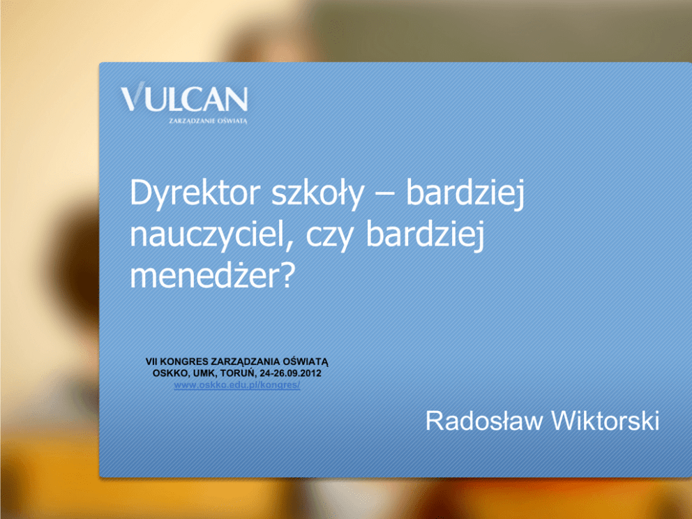 Dyrektor szkoły – bardziej nauczyciel, czy bardziej menedżer? VII KONGRES ZARZĄDZANIA OŚWIATĄ OSKKO, UMK, TORUŃ, 24-26.09.2012 www.oskko.edu.pl/kongres/ Radosław Wiktorski Dyrektor szkoły VII KONGRES ZARZĄDZANIA OŚWIATĄ OSKKO, UMK, TORUŃ, 24-26.09.2012 www.oskko.edu.pl/kongres/ Rozporządzenie Ministra Edukacji Narodowej z dnia 27 października 2009 r. w sprawie wymagań, jakim powinna odpowiadać osoba zajmująca stanowisko dyrektora oraz inne stanowisko kierownicze w poszczególnych typach publicznych szkół i rodzajach publicznych placówek. § 1. Stanowisko dyrektora publicznego przedszkola, publicznej szkoły i placówki może zajmować nauczyciel mianowany lub dyplomowany, który: 1) ukończył studia magisterskie i posiada przygotowanie pedagogiczne oraz kwalifikacje do zajmowania stanowiska nauczyciela w danym przedszkolu, szkole lub placówce; 2) ukończył studia wyższe lub studia podyplomowe z zakresu zarządzania albo kurs kwalifikacyjny z zakresu zarządzania oświatą, prowadzony zgodnie z przepisami w sprawie placówek doskonalenia nauczycieli; 3) posiada co najmniej pięcioletni staż pracy pedagogicznej na stanowisku nauczyciela lub pięcioletni staż pracy dydaktycznej na stanowisku nauczyciela akademickiego; Dyrektor szkoły - nauczyciel A dlaczego nauczyciel? • Bo zna realia szkolne. • Bo wie, jak funkcjonuje szkoła. • Bo wie, jak się uczy. • Bo jest „jednym z nas” • … Dyrektor szkoły - nauczyciel Skoro tak, to… • Firma farmaceutyczna – farmaceuta? • Prywatna przychodnia (szpital) – lekarz? • Korporacja taksówkowa – taksówkarz? • Restauracja – kucharz? Kelner? • … VII KONGRES ZARZĄDZANIA OŚWIATĄ OSKKO, UMK, TORUŃ, 24-26.09.2012 www.oskko.edu.pl/kongres/ Dyrektor szkoły - nauczyciel W większości przypadków dyrektor realizuje także zajęcia dydaktyczne. Szef korporacji taksówkowej obowiązkowo raz w tygodniu wozi klientów? Właściciel/dyrektor restauracji 2 dni w miesiącu ma gotować? Dyrektor hotelu – sprząta pokoje? Pracuje na recepcji? Dyrektor, czyli kto? Uczy – nauczyciel Jeździ taksówką – taksówkarz Gotuje – kucharz Zarządza – człowiek od zarządzania Człowiek od zarządzania, czyli menedżer Dyrektor, czyli kto? Źródło: Małgorzata Świderska, Hanna Chilmon: „Umiejętności dyrektorów szkół i placówek w kontekście wymagań stawianych szkole przez państwo” – publikacja Wydziału Rozwoju Szkół i Placówek ORE Integrowanie zespołu, prowadzenie negocjacji, budowanie relacji, działania PR, organizacja pracy, planowanie, podział zadań, określanie i przydział obowiązków, delegowanie uprawnień, animowanie procesów, motywowanie, Człowiek od zarządzania W zależności od różnych czynników (typ jednostki, uwarunkowania historyczne i inne) funkcja/stanowisko człowieka od zarządzania różnie się nazywa: • Dyrektor, • Prezes, • Naczelnik, • Prezydent, • CEO, • … skoro dyrektor = menedżer to czy szkoła = firma ? Z punktu widzenia zarządzania szkoła = organizacja firma = organizacja fundacja = organizacja urząd = organizacja Czy zatem z punktu widzenia zarządzania szkoła w ogóle jest wyjątkowa? I tak, i nie. zatem dyrektor = prezes ? Zarząd – dyrektor, wicedyrektorzy Rada nadzorcza – prezydent, rada gminy, urząd Akcjonariusze – wyborcy Kontroler branżowy (np. KNF) kuratorium Budżet szkoły jakkolwiek zawsze za mało, to jednak jest to dużo pieniędzy (500 – 1000 średnich miesięcznych wynagrodzeń) Wszędzie występuje ograniczoność zasobów! (wbrew pozorom nie chodzi tylko o $) Szkoła jako MSP Ustawa z 2 lipca 2004 r. o swobodzie działalności gospodarczej, art. 104-110: • za małego przedsiębiorcę uważa się przedsiębiorcę, który w co najmniej jednym z dwóch ostatnich lat obrotowych zatrudniał średniorocznie mniej niż 50 pracowników • za średniego przedsiębiorcę uważa się przedsiębiorcę, który w co najmniej jednym z dwóch ostatnich lat obrotowych zatrudniał średniorocznie mniej niż 250 pracowników Szkoła jako MSP Liczba jednostek wg liczby pracowników 8000 7000 6000 5000 4000 3000 2000 1000 0 1-10 11-25 26-50 Liczba jednostek 51-100 100+ Szkoła jako MSP Struktura jednostek wg zatrudnienia (dane SIO) 215,00 1 158,00 2 817,00 1-10 11-25 26-50 7 444,00 6 348,00 51-100 100+ Klienci? Rynek? Popyt? Podaż? Koniunktura? Sezonowość sprzedaży? Marka? Konkurencja? Bankructwo? Gdzie zatem ta wyjątkowość? Wyjątkowość zarządzania szkołą • Nieokreśloność celu (Rozbieżność celów? Nieokreśloność oczekiwań? …) • Brak podstawowych narzędzi zarządzania • Postrzeganie dyrektora Wyjątkowość zarządzania szkołą Cele Specific – konkretne, jasno określone Measurable – mierzalne, posiadające miary Ambitious – ambitne, stanowiące wyzwanie Realistic – osiągalne, realistyczne, dostosowane do kompetencji, zakresu odpowiedzialności i posiadanych zasobów Time-bound – określone w czasie Wyjątkowość zarządzania szkołą Brak podstawowych narzędzi zarządzania: • Brak najskuteczniejszego narzędzia motywującego • Brak możliwości kształtowania zatrudnienia • Brak realnej możliwości kształtowania wydatków Wyjątkowość zarządzania szkołą Brak wspomnianych narzędzi istotnie utrudnia zarządzanie acz nie uniemożliwia. Może jednak być wykorzystywane jako element ułatwiający pracę: „co ja mogę…” Z drugiej strony spotykamy się też z podejściem „jest dyrektorem, to niech sobie radzi…” Wyjątkowość zarządzania szkołą Postrzeganie dyrektora – stereotyp dyrektora wszechwiedzącego. Menedżerowie w firmach korzystają ze wsparcia. Wsparcie dla menedżera • • • narzędzia outsourcing (jednorazowy bądź stały) usługi doradcze. Usługi doradcze w biznesie Usługi doradcze w biznesie Usługi doradcze w biznesie Usługi doradcze w biznesie Zmiana Kultura stosowania prawa Kultura osiągania rezultatów Zmiana Ustawa o 