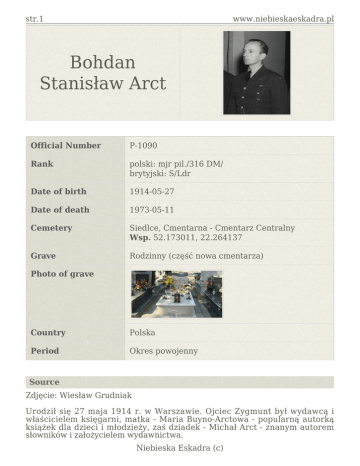 Wojnę zakończył Arct jako polski kapitan i angielski Squadron Leader.