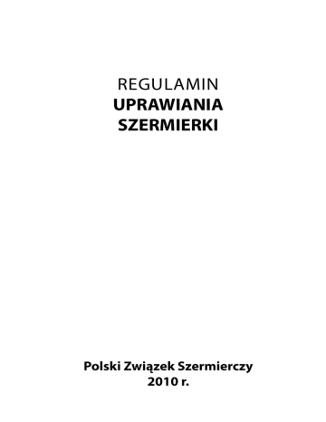 REGULAMIN UPRAWIANIA SZERMIERKI Polski Związek Szermierczy 2010 r. Spis treści A Postanowienia ogólne. . . . . . . . . . . . . . . . . . . . . . . . . . . . . . . . . . . . . . . . . . . . 5 Ogólne . . . . . . . . . . . . . . . . . . . . . . . . . . . . . . . . . . . . . . . . . . . . . . . . . . . . . . . . . . . . 5 Kategorie wiekowe. . . . . . . . . . . . . . . . . . . . . . . . . . . . . . . . . . . . . . . . . . . . . . . . . 5 Zawody. . . . . . . . . . . . . . . . . . . . . . . . . . . . . . . . . . . . . . . . . . . . . . . . . . . . . . . . . . . . 5 Kalendarz. . . . . . . . . . . . . . . . . . . . . . . . . . . . . . . . . . . . . . . . . . . . . . . . . . . . . . . . . . 5 B Organizacja Zawodów. . . . . . . . . . . . . . . . . . . . . . . . . . . . . . . . . . . . . . . . . . . . 7 Organizator . . . . . . . . . . . . . . . . . . . . . . . . . . . . . . . . . . . . . . . . . . . . . . . . . . . . . . . . 7 Zgłoszenia . . . . . . . . . . . . . . . . . . . . . . . . . . . . . . . . . . . . . . . . . . . . . . . . . . . . . . . . . 8 Władze zawodów . . . . . . . . . . . . . . . . . . . . . . . . . . . . . . . . . . . . . . . . . . . . . . . . . . 8 Komisja Techniczna . . . . . . . . . . . . . . . . . . . . . . . . . . . . . . . . . . . . . . . . . . . . . . . . 9 Sędziowie . . . . . . . . . . . . . . . . . . . . . . . . . . . . . . . . . . . . . . . . . . . . . . . . . . . . . . . . . 9 Zawodnicy. . . . . . . . . . . . . . . . . . . . . . . . . . . . . . . . . . . . . . . . . . . . . . . . . . . . . . . . . 10 Sprawy porządkowe . . . . . . . . . . . . . . . . . . . . . . . . . . . . . . . . . . . . . . . . . . . . . . . 10 C Rozgrywki . . . . . . . . . . . . . . . . . . . . . . . . . . . . . . . . . . . . . . . . . . . . . . . . . . . . . . . . 11 Turnieje indywidualne . . . . . . . . . . . . . . . . . . . . . . . . . . . . . . . . . . . . . . . . . . . . . 11 Turnieje drużynowe (Mistrzostwa Polski). . . . . . . . . . . . . . . . . . . . . . . . . . . . 11 Uprawnienia do startu i zmiana kategorii wiekowej . . . . . . . . . . . . . . . . . 12 Mistrzostwa Polski . . . . . . . . . . . . . . . . . . . . . . . . . . . . . . . . . . . . . . . . . . . . . . . . . 12 Puchary Polski . . . . . . . . . . . . . . . . . . . . . . . . . . . . . . . . . . . . . . . . . . . . . . . . . . . . . 13 Kadra . . . . . . . . . . . . . . . . . . . . . . . . . . . . . . . . . . . . . . . . . . . . . . . . . . . . . . . . . . . . . . 14 Reprezentacja. . . . . . . . . . . . . . . . . . . . . . . . . . . . . . . . . . . . . . . . . . . . . . . . . . . . . . 14 Mistrzostwa Świata. . . . . . . . . . . . . . . . . . . . . . . . . . . . . . . . . . . . . . . . . . . . . . . . . 14 Mistrzostwa Europy . . . . . . . . . . . . . . . . . . . . . . . . . . . . . . . . . . . . . . . . . . . . . . . . 15 Puchary Świata . . . . . . . . . . . . . . . . . . . . . . . . . . . . . . . . . . . . . . . . . . . . . . . . . . . . 15 Postanowienia ogólne . . . . . . . . . . . . . . . . . . . . . . . . . . . . . . . . . . . . . . . . . . . . . 16 Listy Klasyfikacyjne. . . . . . . . . . . . . . . . . . . . . . . . . . . . . . . . . . . . . . . . . . . . . . . . . 16 Postanowienia końcowe . . . . . . . . . . . . . . . . . . . . . . . . . . . . . . . . . . . . . . . . . . . 18 3 D BEZPIECZEŃSTWO. . . . . . . . . . . . . . . . . . . . . . . . . . . . . . . . . . . . . . . . . . . . . . . . 19 Wytyczne dla zawodników, trenerów, sędziów, klubów i organizatorów. . . . . . . . . . . . . . . . . . . . . . . . . . . . . . . . . . . . . . . . . . . . . . . . . . . . 20 Zapobieganie wypadkom i odpowiedzialność szermierzy. . . . . . . . . . . . 21 Zapobieganie wypadkom podczas treningu . . . . . . . . . . . . . . . . . . . . . . . . 23 Zapobieganie wypadkom w Klubach i na zawodach. . . . . . . . . . . . . . . . . 23 Pomieszczenia . . . . . . . . . . . . . . . . . . . . . . . . . . . . . . . . . . . . . . . . . . . . . . . . . . . . . 24 Instalacja elektryczna . . . . . . . . . . . . . . . . . . . . . . . . . . . . . . . . . . . . . . . . . . . . . . 25 Odpowiedzialność . . . . . . . . . . . . . . . . . . . . . . . . . . . . . . . . . . . . . . . . . . . . . . . . . 25 Rejestracja wypadków . . . . . . . . . . . . . . . . . . . . . . . . . . . . . . . . . . . . . . . . . . . . . 26 Pierwsza pomoc . . . . . . . . . . . . . . . . . . . . . . . . . . . . . . . . . . . . . . . . . . . . . . . . . . . 26 Zasady dobrej praktyki . . . . . . . . . . . . . . . . . . . . . . . . . . . . . . . . . . . . . . . . . . . . . 27 Podział na kategorie wiekowe i wymagania sprzętowe . . . . . . . . . . . . . . 28 E ZAŁĄCZNIKI . . . . . . . . . . . . . . . . . . . . . . . . . . . . . . . . . . . . . . . . . . . . . . . . . . . . . . 29 Tabele punktowe . . . . . . . . . . . . . . . . . . . . . . . . . . . . . . . . . . . . . . . . . . . . . . . . . . 29 F REGULAMINY UZUPEŁNIAJĄCE. . . . . . . . . . . . . . . . . . . . . . . . . . . . . . . . . . . 32 Regulamin przyznawania licencji trenerskich. . . . . . . . . . . . . . . . . . . . . . . . 32 Regulamin przyznawania licencji zawodniczych. . . . . . . . . . . . . . . . . . . . . 33 Zasady zabezpieczające obsadę sędziów na zawodach . . . . . . . . . . . . . . 33 Regulamin przyznawania licencji sędziowskich. . . . . . . . . . . . . . . . . . . . . . 35 4 czerwiec 2010 A projekt Regulaminu Polskiego Związku Szermierczego Postanowienia ogólne 1. Ogólne 1.1. Przepisy zawarte w niniejszym regulaminie obowiązują na następujących zawodach: • Indywidualne i Drużynowe Mistrzostwa Polski we wszystkich kategoriach wiekowych • Puchary Polski we wszystkich kategoriach wiekowych • Puchary Świata i Europy w zakresie punktów 4.2.3, 5, i 6. 2. Kategorie wiekowe 2.1. Obowiązują następujące kategorie wiekowe: • seniorzy - zawodnicy w wieku ponad 23 lata, • młodzieżowcy - zawodnicy w wieku 21 - 23 lata, • juniorzy - zawodnicy w wieku 18 - 20 lat, • juniorzy młodsi (kadeci)