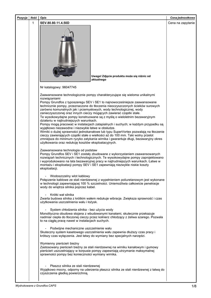 1 Cena na zapytanie SEV.80.80.11.4.50D Nr - Eko