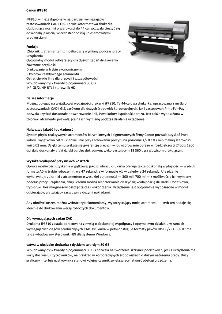Canon iPF810 iPF810 — niezastąpiona w najbardziej