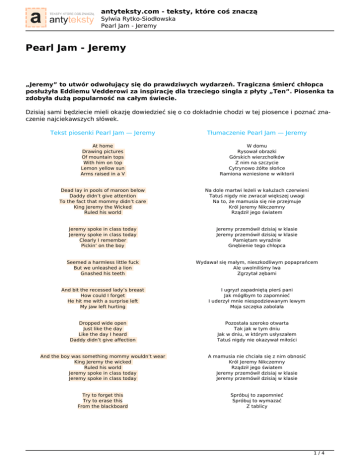 „Jeremy” to utwór odwołujący się do prawdziwych wydarzeń. Tragiczna śmierć chłopca