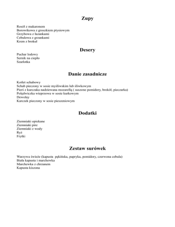 Zupy Desery Danie zasadnicze Dodatki Zestaw surówek