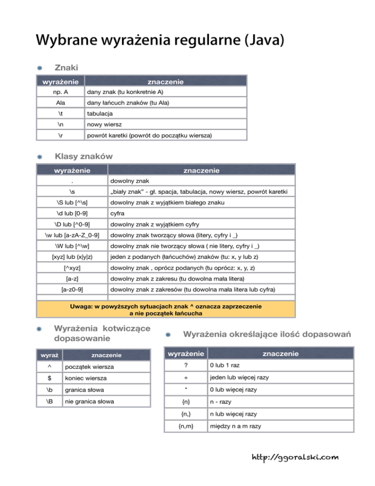 Uwaga: w powyższych sytuacjach znak ^ oznacza zaprzeczenie
