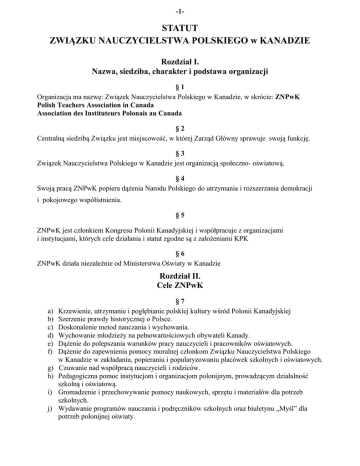 STATUT ZWIĄZKU NAUCZYCIELSTWA POLSKIEGO w KANADZIE