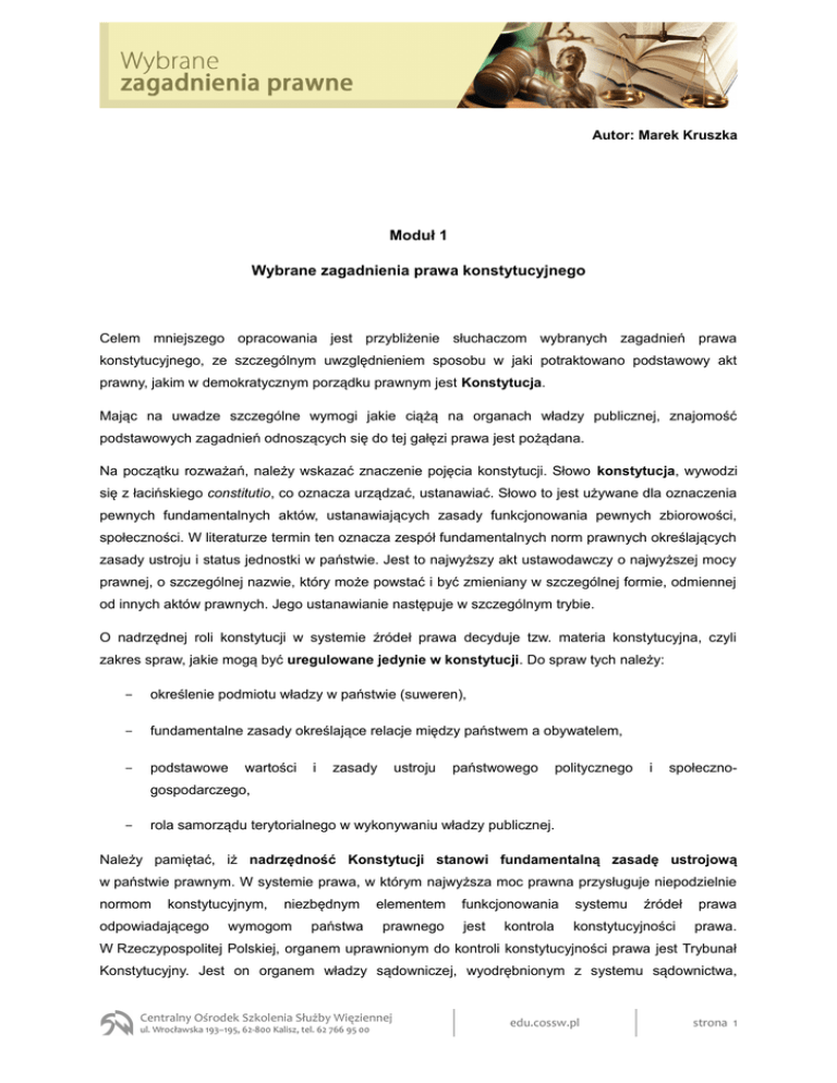 Moduł 1 Wybrane zagadnienia prawa konstytucyjnego