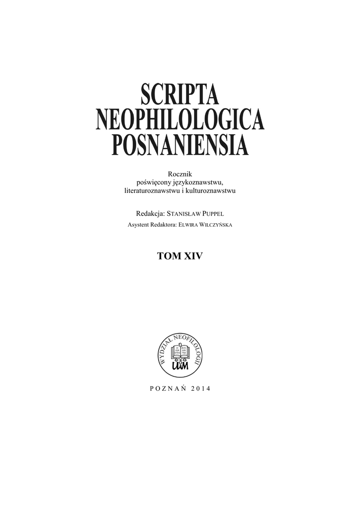 Scripta Neophilologica Posnaniensia. Tom XIV, strony: 7–31