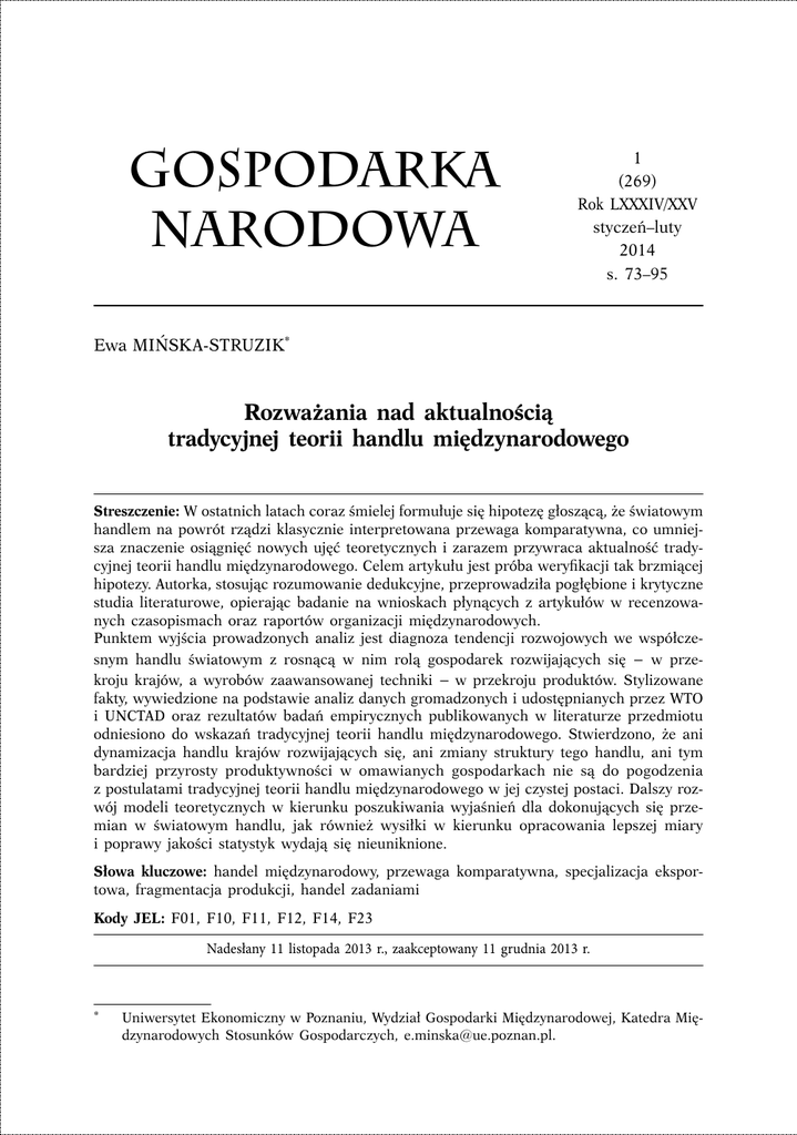 Artykuł - Gospodarka Narodowa