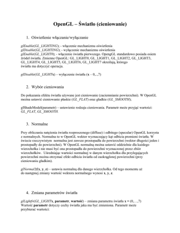 glEnable(GL_LIGHTING); - włączenie mechanizmu oświetlenia