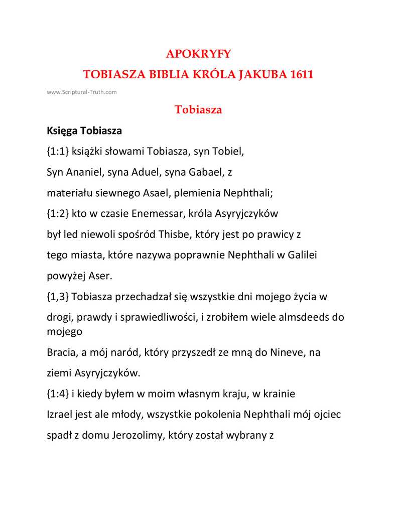 APOKRYFY TOBIASZA BIBLIA KRÓLA JAKUBA 1611 Tobiasza