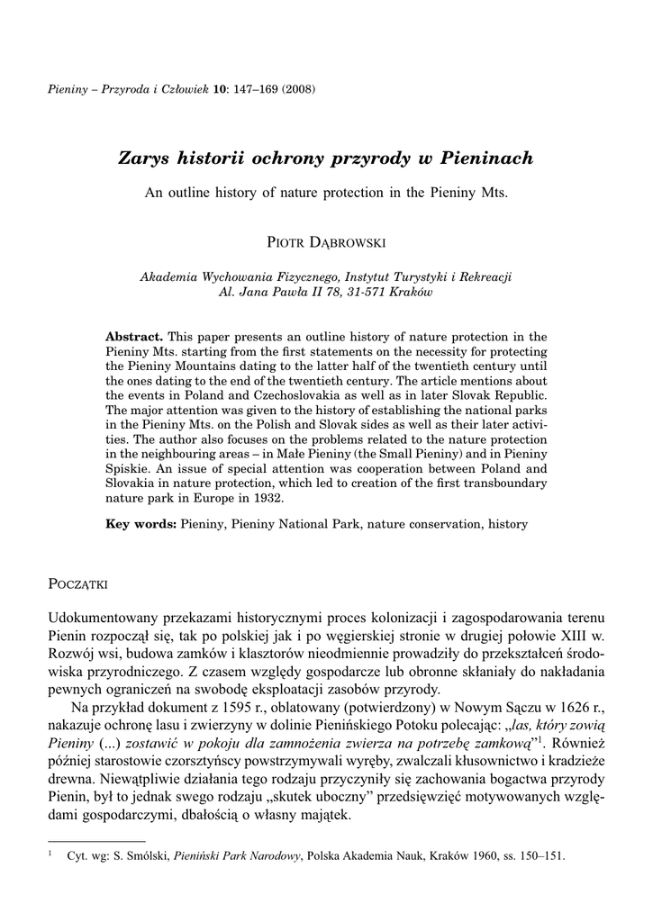 Dąbrowski P. - Zarys historii ochrony przyrody w Pieninach