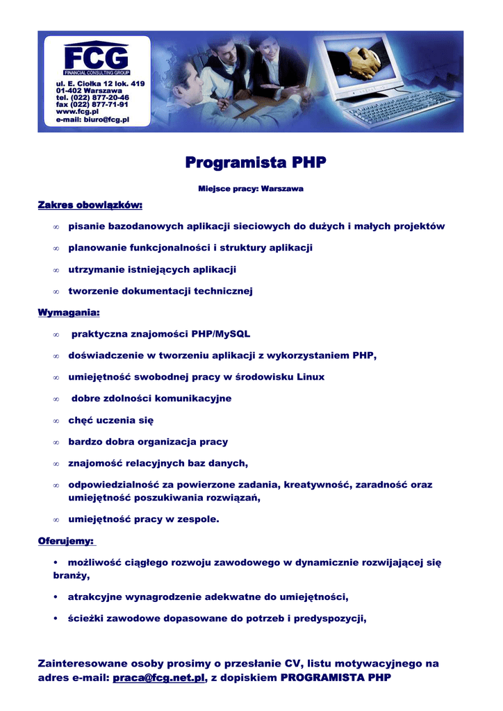 PROGRAMISTA PHP - REKRUTACJA FCG