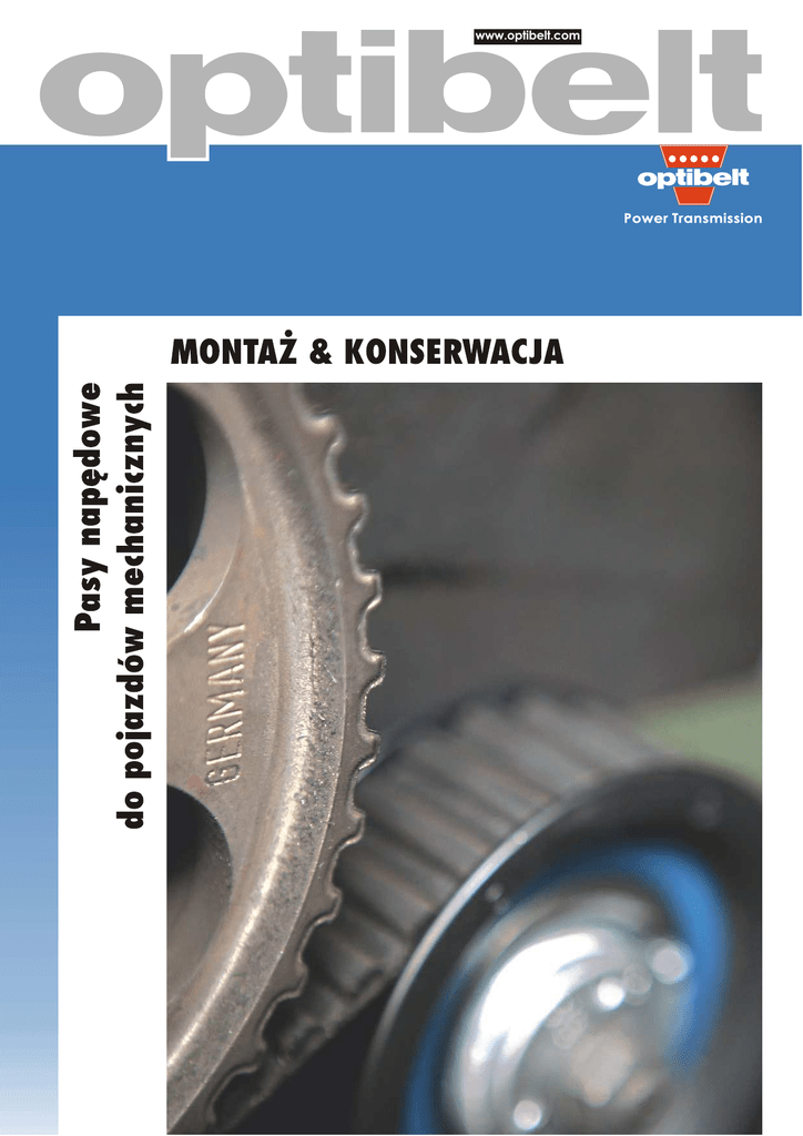 www.optibelt.com ZRK P³askie pasy zêbate Optibelt - profile p³askich pasów zêbatych i kó³ PROFIL PASA PROFIL KO£A 41 Audi, Citroen, Fiat, Ford, Mazda, Opel/Vauxhall, Peugeot, Renault, Volvo, VW 84 Audi, Fiat, Ford, £ada, Lancia, Mitsubishi, Opel/ Vauxhall, Rover, VW 96 45 65 97 Budowa 1 2 3 4 1. Grzbiet: odporna na zu¿ycie mieszanka gumowo polichloroprenowa 2. Kord: ma³o rozci¹gliwe w³ókno szklane 3. Rdzeñ zêba: odporna na œcinanie mieszanka gumowo polichloroprenowa PRZYK£ADY ZASTOSOWANIA 58 58 40 76 77 Fiat, VW Audi, Fiat, Ford, Opel/ Vauxhall, Peugeot, Porsche, Renault, Volvo, VW Audi, Bedford, Mitsubishi,VW Audi, VW BMW, Citroen, Honda, Mazda, Opel/Vauxhall, Porsche, Renault, Rover, Volvo, VW Ford, £ada, Volvo Opel/Vauxhall Daihatsu, Honda, Mazda, Mitsubishi, Renault, Rover, Suzuki, Volvo Daihatsu, Mazda, Nissan, Rover, Subaru, Suzuki 39 Mazda, Toyota 4. Tkanina: odporny na œcinanie poliamid 90 Wybór profilu Audi, Ferrari, Fiat Lancia, Land-Rover, VW 99 Fiat, Lancia 98 Citroen, Fiat, Ford, Peugeot, Rover Optibelt ZRK jest specjaln¹, now¹ konstrukcj¹ polecan¹ dla napêdów wa³ów rozrz¹du w silnikach pojazdów mechanicznych. wysoki wspó³czynnik sprawnoœci; bezpoœlizgowe przenoszenie energii; maksymalna trwa³oœæ; bardzo wysoka odpornoœæ na œcieranie; bezobs³ugowe u¿ytkowanie; niezwyk³a odpornoœæ na dzia³anie niskich i wysokich temperatur oraz oleju; wyj¹tkowa odpornoœæ na rozci¹ganie. Profile i konstrukcje tych wysokowydajnych pasów zosta³y perfekcyjnie opracowane - co do najdrobniejszego szczegó³u. Czêstotliwoœæ wymiany Naprê¿enie System naprê¿aj¹cy Stan pasa Uszkodzenia grzbietu pasa Kr¹¿ki zwrotne Kr¹¿ki naprê¿aj¹ce Obce cia³a Zu¿ycie profilu pasa Ko³a zêbate Agregaty Obce cia³a Odchylenie kó³ Nad³amania/ Wyszczerbienia Ko³a zêbate Agregaty Obce cia³a Odchylenie kó³ Zu¿ycie krawêdzi Odchylenie kó³ Tarcza obrze¿nikowa Zanieczyszczenie Nieszczelnoœæ elementów systemu Poziom ha³asu pracy Naprê¿enie Agregaty Odchylenie kó³ Kr¹¿ki zwrotne i naprê¿aj¹ce Dziêki optymalnie dopasowanym do siebie elementom Optibelt ZRK maj¹ doskona³¹ wydajnoœæ i niezwykle du¿¹ trwa³oœæ. PROBLEM - PRZYCZYNA - USUNIÊCIE PROBLEMU SPIS KONTROLNY Przy ka¿dym przegl¹dzie Zbyt g³oœna praca 1. Zbyt du¿e naprê¿enie: pas „wyje”, „gwi¿d¿e”. 2. Zbyt ma³e naprê¿enie: pas uderza o pokrywê. Zêby i tkanina odrywaj¹ siê od Uszkodzone elementy systemu korpusu pasa 1. Luz ³o¿yskowy. 1. Nieszczelnoœæ silnika lub w jego 2. Uszkodzona powierzchnia bliskoœci (np. wycieki oleju, bie¿ni ³o¿yska tocznego. œrodków przeciw zamarzaniu etc.) Usuniêcie problemu 1.+ 2. Ustawiæ prawid³owe naprê¿enie. Usuniêcie problemu 1. Usun¹æ nieszczelnoœæ, wymieniæ pas. Usuniêcie problemu 1. + 2. Wymieniæ kr¹¿ek zwrotny, naprê¿aj¹cy i/lub prowadz¹cy. Œcieranie boku zêba, pêkniêcia stopy zêba i œcinanie zêbów 1. Zbyt du¿e lub zbyt ma³e naprê¿enie. 2. Dzia³anie cia³ obcych. 3. Zbyt mocno osadzone ko³a p³askiego pasa zêbatego lub kr¹¿ka naprê¿aj¹cego. Œcieranie krawêdzi 1. Nierównolegle ustawione osie; pas trze o tarczê obrze¿nikow¹. 2. Osiowe przesuniêcie kó³: pas zêbaty nie mo¿e pracowaæ w jeden p³aszczyŸnie. 3. Wada tarczy obrze¿nikowej. 4. Luz elementów. Uszkodzenia pasa po stronie zêbów 1. Obce cia³o na drodze pasa. 2. Uszkodzenie uzêbienia ko³a pasowego przez obce cia³o lub narzêdzia podczas monta¿u. 3. Uszkodzenie pasa przed lub podczas monta¿u. Usuniêcie problemu 1. Wymieniæ pas, ustawiæ prawid³owe naprê¿enie. 2. Usuniêcie obcych cia³, sprawdzenie prawid³owej pozycji obudowy, wymiana pasa. 3. Usuniêcie przyczyny (np. uszkodzonego ³o¿yska), wymiana pasa. Usuniêcie problemu 1. + 2. Skontrolowaæ napêd, prawid³owo ustawiæ lub wymieniæ ko³a; wymieniæ pas. 3. + 4. Wymieniæ kr¹¿ki zwrotne/naprê¿aj¹ce. Usuniêcie problemu 1. Usun¹æ obce cia³o, wymieniæ pas, zamocowaæ prawid³owo obudowê. 2. Wymieniæ ko³o pasowe, wymieniæ pas, zamontowaæ go prawid³owo. 3. Wymieniæ pas i zamocowaæ go prawid³owo. Rysy na grzbiecie pasa 1. Zbyt wysoka lub zbyt niska temperatura otoczenia. 2. Dzia³ania obcych mediów. 3. Ciê¿ka praca kr¹¿ka grzbietowego. 4. Starzenie siê, zu¿ycie. Zrywa siê p³aski pas zêbaty 1. Obce cia³o w napêdzie. 2. Dzia³anie obcych mediów. 3. Za wysokie naprê¿enie w³asne. 4. Z³amanie pasa przed ew. w trakcie monta¿u. Œcieranie tkaniny w jarzmie przek³adni obiegowej 1. Zbyt du¿e naprê¿enie. 2. Zu¿yte ko³o p³askiego pasa zêbatego. Usuniêcie problemu 1. Sprawdziæ przyczynê (np. wydajnoœæ ch³odzenia), usun¹æ problem, wymieniæ pas. 2. Wymieniæ pas, sprawdziæ prawid³owe zamocowanie pokrywy. 3. Wymieniæ kr¹¿ek, wymieniæ pas. 4. Wymieniæ pas. Usuniêcie problemu 1. Usun¹æ obce cia³o lub medium, wymieniæ pas. 2. Wymieniæ pas, sprawdziæ prawid³owe zamocowanie os³ony. 3. Wymieniæ pas, ustawiæ prawid³owe naprê¿enie. 4. Wymieniæ pas i prawid³owo go zamocowaæ. Usuniêcie problemu 1. Wymieniæ pas, ustawiæ prawid³owe naprê¿enie. 2. Wymieniæ ko³o pasowe, wymieniæ pas. Optymalne przenoszenie energii nawet po tysi¹cach godzin pracy przy ekstremalnych obci¹¿eniach tak wysokie wymagania spe³niaj¹ p³askie pasy zêbate ZRK produkowane przez Optibelt. RBK Pasy wielo¿ebrowe du¿e prze³o¿enia wysoki wspó³czynnik przenoszenia energii minimalny poœlizg wysoka odpornoœæ na dzia³anie oleju i skrajnych temperatur wolne od wibracji; ciche bardzo odporne na obci¹¿enia Budowa 1 2 3 4 1. Grzbiet: odporna na zu¿ycie mieszanka polichloroprenowo-gumowa 2. Ciêgno: odporny na wyd³u¿enie kord poliestrowy. 3. Warstwa otuliny: mieszanka polichloroprenowo-gumowa o wysokim wspó³czynniku przywierania (folia). 4. Rdzeñ: mieszanka polichloroprenow -gumowa. Profile: PJ; PK; DPK Wymiary: 2 PK od 786 - 905 mm 3 PK od 605 - 1.215 mm 4 PK od 605 - 1.520 mm 5 PK od 625 - 1.88