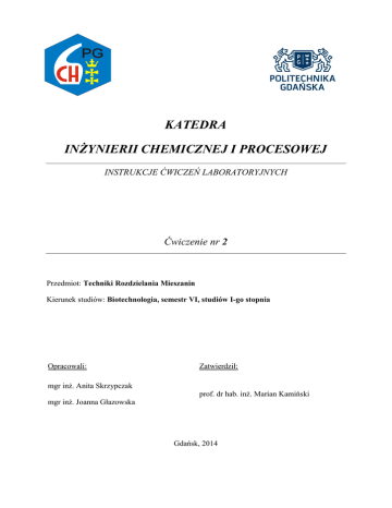 KATEDRA INŻYNIERII CHEMICZNEJ I PROCESOWEJ INSTRUKCJE ĆWICZEŃ LABORATORYJNYCH Ćwiczenie nr 2 Przedmiot: Techniki Rozdzielania Mieszanin Kierunek studiów: Biotechnologia, semestr VI, studiów I-go stopnia Opracowali: Zatwierdził: mgr inż. Anita Skrzypczak prof. dr hab. inż. Marian Kamiński mgr inż. Joanna Głazowska Gdańsk, 2014 Spis treści 1. Wprowadzenie .................................................................................................................... 3 2. Chromatografia w normalnych układach faz (NP) ............................................................. 3 2.1. Fazy stacjonarne stosowane w NP .................................................................................. 3 2.2. Fazy ruchome w NP ........................................................................................................ 4 2.3. Mechanizm retencji w NP ............................................................................................... 6 3. Chromatografia w układzie faz odwróconych .................................................................... 6 3.1. Fazy stacjonarne stosowane w RP................................................................................... 6 3.2. Fazy ruchome w RP ........................................................................................................ 8 3.3. Mechanizm retencji ......................................................................................................... 9 4. Chromatografia oddziaływań hydrofilowych (HILIC) ..................................................... 10 4.1. Fazy stacjonarne w HILIC ............................................................................................ 11 4.2. Fazy ruchome w HILIC ................................................................................................. 13 4.3. Mechanizm retencji ....................................................................................................... 13 5. Test kolumny chromatograficznej .................................................................................... 15 6. Wymagania do sprawdzianu ............................................................................................. 16 7. Przebieg ćwiczenia............................................................................................................ 16 8. Wymagania do sprawozdania ........................................................................................... 22 9. Literatura ........................................................................................................................... 22 1. Wprowadzenie Chromatografia jest przede wszystkim techniką rozdzielania substancji. Po zastosowaniu detektora, spełniającego rolę przepływowego instrumentu pomiarowego staje się techniką analityczną. Szczególna zaletą chromatografii cieczowej jest ogromnie szeroki zakres uniwersalności, jako techniki rozdzielania. Można ją zastosować do analizy mieszanin prawie wszystkich substancji, zarówno lotnych i nielotnych, jak również termicznie trwałych i nietrwałych. 2. Chromatografia w normalnych układach faz (NP) Normalne układy faz (NP – ang. Normal Phase) to układy chromatograficzne, w których faza stacjonarna wykazuje wyższą polarność, niż faza ruchoma. 2.1. Fazy stacjonarne stosowane w NP W normalnych układach faz możemy wyróżnić dwa najczęściej występujące rodzaje sorbentów stosowanych, jako fazy stacjonarne: tlenki nieorganiczne tj. żel krzemionkowy (tlenek krzemu), tlenek glinu, tlenek cyrkonu tlenek tytanu lub inne sole nieorganiczne: siarczan magnezu, fosforan wapnia, glinokrzemiany, sadzę grafitową. Drugą grupę stanowią sorbenty (najczęściej żel krzemionkowy, rzadziej tlenek cyrkonu, tytanu lub glinu) modyfikowane, których do powierzchni sorpcyjnej zostają przyłączone podstawniki zmniejszające polarność całkowitą sorbentu. Najczęściej używanymi modyfikatorami są związkami chemiczne, posiadającymi polarne grupy: aminową (NH2), nitrową (NO2), nitrylową (CN), diolową (R(OH)2), amidową (RCONH2); stosowane są również do specjalnych zastosowań cyklodekstryny. Żel krzemionkowy jest najczęściej stosowany, jako faza stacjonarna w normalnych układach faz chromatografii cieczowej. Wynika to z niskiej ceny żelu krzemionkowego, spowodowanej powszechną obecnością krzemu i jego związków w przyrodzie, wysokiej odporności mechanicznej (możliwość stosowania w warunkach wysokiego ciśnienia) oraz możliwość kontrolowania wielkości ziaren i porowatości wypełnienia, co wpływ na duży zakres zastosowań. Jednak bardzo poważną wadą żelu krzemionkowego jest brak odporności na wzrost wartości pH powyżej 7 (niska użyteczność do rozdzielania związków o charakterze zasadowym). Bardziej odporne na wysokie pH fazy ruchomej są fazy na bazie porowatego tlenku tytanu, cyrkonu bądź glinu (do pH 9,5). Na aktywność i właściwości powierzchni adsorbentów nieorganicznych istotny wpływ mają metale, najczęściej żelaza, wapnia, kadmu, sodu, magnezu, potasu, występujące w ilościach na poziomie śladowych zawartości (0,1-10 ppm). Metale te mają bezpośredni wpływ na kwasowość powierzchni (wg teorii Lewisa) i w związku z tym dąży się do najwyższego stopnia ich usunięcia z powierzchni wypełnienia. 2.2. Fazy ruchome stosowane w NP W normalnych układach faz stosuje się niemieszające się z wodą rozpuszczalniki, jako pojedyncze ciecze oraz dwuskładnikowe mieszaniny, w których składniki różnią się polarnością i siłą elucyjną. W niektórych przypadkach stosuje się, jako dodatek do eluentu polarny składnik np. alkohol (metanol, etanol, propan-2-ol) lub tetrahydrofuran. Znajomość siły elucyjnej ułatwia dobór fazy ruchomej do rozdzielania mieszanin określonych substancji. Snyder uporządkował rozpuszczalniki stosowane w chromatografii adsorpcyjnej w kolejności siły elucyjnej, przypisując im określon