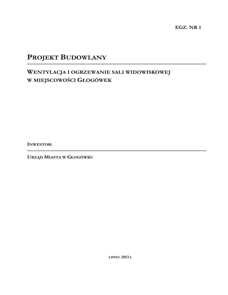 EGZ. NR 1 PROJEKT BUDOWLANY WENTYLACJA I OGRZEWANIE SALI WIDOWISKOWEJ W MIEJSCOWOŚCI GŁOGÓWEK INWESTOR: URZĄD MIASTA W GŁOGÓWKU LIPIEC 2013 r. PROJEKT BUDOWLANY: OBIEKT: MIEJSKO-GMINNY OŚRODEK KULTURY. POŁOśENIE: UL. BATOREGO 10, 48-250 GŁOGÓWEK INWESTOR: URZĄD MIASTA W GŁOGÓWKU PROJEKTANT: mgr inŜ. Grzegorz Krzanowski, Upr. Bud. PDK/0047/PWOS/12 SPRAWDZAJĄCY: inŜ. Jan Obłoj, Upr. Bud. 318/66 Strona 2 SPIS ZAWARTOŚCI OPRACOWANIA: OPIS TECHNICZNY: OŚWIADCZENIE WG ART. 20 UST. 4 USTAWY PRAWO BUDOWLANE ................................................. 4 1. PODSTAWA OPRACOWANIA ................................................................................................................. 5 2. ZAKRES OPRACOWANIA ........................................................................................................................ 5 3. OPIS INSTALACJI WENTYLACYJNEJ SALI WIDOWISKOWEJ MGOK W GŁOGÓWKU ............ 5 3.1. ZADANIA INSTALACJI WENTYLACYJNEJ ......................................................................................... 5 3.2. DANE WYJŚCIOWE DO PROJEKTOWANIA ....................................................................................... 5 3.3. WYMAGANA ILOŚĆ POWIETRZA ......................................................................................................... 6 3.4. OPIS OGÓLNY INSTALACJI ................................................................................................................... 6 3.5. MATERIAŁY I WYKONANIE .................................................................................................................. 7 3.5.1. PRZEWODY WENTYLACYJNE .............................................................................................................. 7 3.5.2. AKCESORIA NAWIEWNO-WYWIEWNE .............................................................................................. 8 3.5.3. URZĄDZENIA REGULACYJNO-ODCINAJĄCE I KLAPY P.POś. ................................................... 8 3.5.4. WYTŁUMIENIA ......................................................................................................................................... 8 3.5.5. OTWORY REWIZYJNE ............................................................................................................................ 8 3.5.6. TŁUMIKI ..................................................................................................................................................... 9 3.5.7. IZOLACJE ................................................................................................................................................... 9 4. OPIS INSTALACJI WENTYLACYJNEJ POMIESZCZEŃ SOCJALNO-BYTOWYCH .................... 9 5. WYMAGANIA ELEKTRYCZNE I AUTOMATYCZNE ...................................................................... 10 6. UWAGI KOŃCOWE ................................................................................................................................. 10 7. CZĘŚĆ RYSUNKOWA ............................................................................................................................. 11 Strona 3 OŚWIADCZENIE wg art. 20 ust. 4 Ustawy Prawo Budowlane Niniejszy projekt instalacji wentylacyjnej Sali widowiskowej oraz pomieszczeń socjalno-bytowych, został sporządzony zgodnie z obowiązującymi przepisami i zasadami wiedzy technicznej. Projektant: mgr inŜ. Grzegorz Krzanowski Sprawdzający: inŜ. Jan Obłoj Strona 4 OPIS TECHNICZNY: 1. Podstawa opracowania • • • • • Zamówienie, Podkłady architektoniczno-budowlane, Aktualnie obowiązujące przepisy i normy w zakresie projektowanej instalacji, Uzgodnienia międzybranŜowe, Uzgodnienia z inwestorem, 2. Zakres opracowania Niniejszy projekt obejmuje: • instalację wentylacyjną i grzewczą Sali widowiskowej, • instalację wentylacyjną pomieszczeń socjalno-bytowych. 3. Opis instalacji wentylacyjnej sali widowiskowej MGOK w Głogówku 3.1. Zadania instalacji wentylacyjnej Instalacja wentylacyjna sali widowiskowej powinna zapewniać: wymaganą ilość świeŜego powietrza, odpowiednią temperaturę w okresach grzewczych. 3.2. Dane wyjściowe do projektowania Do obliczeń wentylacji przyjęto następujące parametry obliczeniowe: Parametry powietrza zewnętrznego: Okres letni: Tp = 28,2 0C φ = 45% Parametry powietrza wewnętrznego: Okres zimowy: Tp = -200C φ = 100% Tw = 20 0C ± 20C φ – wartość wynikowa Dla okresu letniego temperatura panująca w sali będzie temperaturą wynikową. Projektuje się wyposaŜyć centralę wentylacyjną w sekcję pustą, do której będzie moŜna w przyszłości wstawić chłodnicę, umoŜliwiającą klimatyzację sali. Strona 5 3.3. Wymagana ilość powietrza Ilość powietrza przypadająca na jedną osobę: liczba miejsc siedzących: 350 miejsc liczba osób występujących na scenie: 30 osób ilość powietrza przypadająca na jedną osobę: 20 m3/h sumaryczna ilość powietrza: 20*(350+30) = 7 600 m3/h Ilość powietrza przy uwzględnieniu zysków ciepła: zyski ciepła pochodzące od ludzi: pozostałe zyski ciepła: ok. 54 kW ok. 10 kW ilość powietrza: V = (54+10)*3600/(1,2*14) = 13 715 m3/h, przyjmuję do obliczeń V = 14 000 m3/h stąd, krotność wymian wynosi: 14.000/(2.600+900) = 4 w/h Ilość powietrza przy uwzględnieniu strat ciepła: straty ciepła liczone dla pustej sali wynoszą: 10 kW stąd ilość powietrza wynosi: 10 * 3600/(1,2*1,02*3) = 9 800 m3/h przyjmuję do obliczeń V = 10 000 m3/h stąd, krotność wymian wynosi: 10.000/(2.600 + 900) = 2,8 w/h 3.4. Opis ogólny instalacji Projektuje się układ instalacji wentylacyjnej mechanicznej, nawiewno-wywiewnej z recyrkulacją o wydajności ok. 14 000 m3/h. Centrala umieszczona będzie w pomieszczeniu technicznym znajdującym się w piwnicy. PoniewaŜ inwestor nie wymaga klimatyzacji rozpatrywanego pomieszczenia, centrala będzie wyposaŜona tylko w funkcję grzania. Projektuje się jednak wyposaŜ