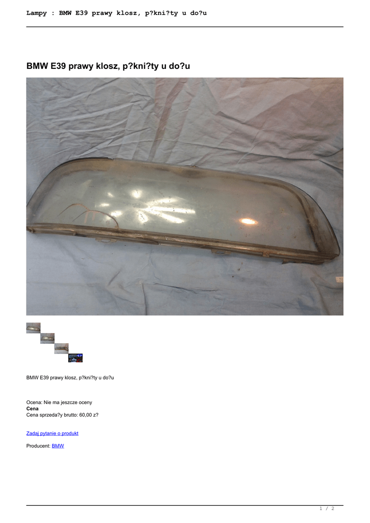 BMW E39 prawy klosz, pęknięty u dołu - Lampy