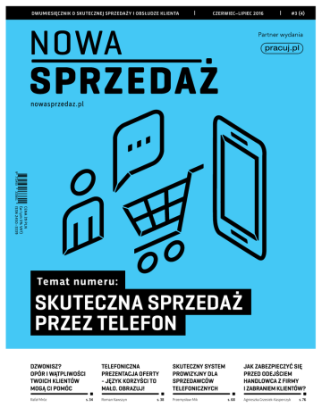 Temat numeru: SKUTECZNA SPRZEDAŻ PRZEZ TELEFON DZWONISZ? OPÓR I WĄTPLIWOŚCI TWOICH KLIENTÓW MOGĄ CI POMÓC Rafał Mróz TELEFONICZNA PREZENTACJA OFERTY - JĘZYK KORZYŚCI TO MAŁO. OBRAZUJ! s. 34 Roman Kawszyn s. 38 SKUTECZNY SYSTEM PROWIZYJNY DLA SPRZEDAWCÓW TELEFONICZNYCH Przemysław Mik JAK ZABEZPIECZYĆ SIĘ PRZED ODEJŚCIEM HANDLOWCA Z FIRMY I ZABRANIEM KLIENTÓW? s. 68 Agnieszka Grzesiek-Kasperczyk s. 76 NOWA SPRZEDAŻ 4 CZERWIEC-LIPIEC 2016 NR 3(4) C ZERWIEC–LIPIEC 2016 SPIS TREŚCI 64 · #TEMAT NUMERU Jak motywować zespół handlowców sprzedających przez telefon? Rafał Judek 68 · #TEMAT NUMERU Skuteczny system prowizyjny dla sprzedawców telefonicznych Przemysław Mik 10 · Druga połowa meczu jest decydująca – rozegraj ją z głową Dorota Bienicewicz 14 · Mądrze wykorzystaj sezon wakacyjny #TEMAT NUMERU Złote zasady telemarketingu – jak zbudować dobry skrypt Karolina Jóźwik, Szymon Zwoliński 24 · #TEMAT NUMERU Zaplanuj sukces, czyli skuteczna sprzedaż telefoniczna dla handlowców Iza Krejca-Pawski 30 · #TEMAT NUMERU Nie popełniasz tego błędu podczas sprzedaży przez telefon, prawda? Monika Bartkowiak 34 · #TEMAT NUMERU Savoir-vivre w rozmowach przez telefon Dorota Szcześniak-Kosiorek Wojciech Herra 20 · 72 · #TEMAT NUMERU Dzwonisz? Opór i wątpliwości Twoich klientów mogą Ci pomóc 76 · Jak zabezpieczyć się przed odejściem handlowca z firmy i zabraniem klientów? Agnieszka Grzesiek-Kasperczyk 80 · Jak ustalać ceny na konkurencyjnych rynkach? Maciej Kroenke 85 · Content marketing w sprzedaży Piotr Stohnij 89 · Dlaczego stary e-mailing wciąż sprzedaje? Judyta Mojżesz-Zimonczyk 92 · Zespół – jedna z tajemnic sprzedaży Anna Gola Rafał Mróz 96 · Rozmowa coachingowa z handlowcem krok po kroku 38 · #TEMAT NUMERU Telefoniczna prezentacja oferty – język korzyści to za mało. Obrazuj! Roman Kawszyn Jakub Sadowski 100 · Traktuj klienta jak ambasadora swojej marki Marta Bryła-Gozdyra 44 · #TEMAT NUMERU Co robić po pierwszej telefonicznej rozmowie sprzedażowej? Michał Szehidewicz 104 · Znajdź nić porozumienia z klientem – mowa ciała w obsłudze klienta Dominika Maciejak 48 · #TEMAT NUMERU Jak zwiększyć liczbę telefonów od potencjalnych klientów? Tomasz Kierski 53 · #TEMAT NUMERU Call center – multikanałowość odpowiedzią na multiklienta Paulina Hinz-Żurowska 58 · #TEMAT NUMERU Ile kosztuje stworzenie własnego call center? Jarosław Stępkowski 110 · Sprzedaż to randkowanie z klientem – jak robić to skutecznie? Joanna Wazowicz 112 · Radykalne negocjacje – Gra tylko dla orłów! Część 4. Podlegasz wpływowi i nawet o tym nie wiesz Marcin S. Rogowski 116 · Felieton: Sprzedawco – ucz się lub zgiń Marcin S. Rogowski #SKUTECZNA SPRZEDAŻ 85 #SKUTEC ZNA SPRZEDAŻ #CONTENT MARKETING CONTENT MARKETING W SPRZEDAŻY AUTOR: Piotr Stohnij „Do formy wkładam treści”– rapował w „Powierzchniach tnących” Fokus i… wiele wskazuje na to, że podobne wyzwanie stoi również przed sprzedażą. Wyjątkowo ważne staje się obecnie wsparcie działu sprzedaży poprzez działania content marketingowe. Jakie dokładnie? Z których powinni korzystać handlowcy? A przede wszystkim kto powinien je zainicjować? Z ARTYKUŁU DOWIESZ SIĘ M.IN.: jakie są główne składniki content marketingu w sprzedaży, czym jest przenikliwość biznesowa, jakie są trzy poziomy formułowania oferty wartości, jak zrozumieć klienta i kiedy się to opłaca, dlaczego historie są ważne w marketingu i sprzedaży. N ie, nie chodzi o to, by Twoi handlowcy zaczy- rodzaju opiekunem treści, który rozumie, co firma nali dzień od Paktofoniki (chociaż „Jestem ma do zaoferowania i czego poszukuje konkretny Bogiem” mogłoby mieć pozytywny wpływ na kupujący, przez co podsuwa mu właśnie te tre- poziom motywacji) lub rymowali w rozmowach ści, których on szuka. Jest to niezmiernie ważne z klientami. Nie ulega jednak wątpliwości, że co- i pozwala zmienić naszą firmę, tak by zamiast raz ważniejsze staje się to, jakie treści (historie po prostu sprzedawać produkty i usługi stała i sposoby prezentacji oferty wartości) niesie ze się naprawdę zaangażowana w rozwiązywanie sobą dana forma przekazu – sprzedawca ma tu problemów innych ludzi”. wielkie pole do popisu, oddziałując w bezpośred- Marketing treści polega na komunikowaniu się niej rozmowie na potencjalnego klienta. z grupą docelową poprzez dostarczanie ciekawych, 3 składniki content marketingu w sprzedaży namawiającej wprost do wzięcia udziału w jakiejś Dlaczego sprzedaż powinna się zainteresować gnowanie leada, który trafi w ręce firmy. Koncepcja inspirujących treści zamiast stosowania reklamy akcji sprzedażowej. To również sposób na pielę- treścią i uczestniczyć w procesie jej wytwarzania? ta opanowała już marketing i stopniowo wypiera W maju tego roku gościem specjalnym konfe- działania intruzywne, skłaniając potencjalnych klien- rencji magazynu Harvard Business Review Polska tów do wirtualnego „podniesienia ręki” na znak, był David Meerman Scott, guru i międzynaro- że dana treść ich interesuje, co jest sygnałem dla dowy autorytet w zakresie marketingu czasu przedsiębiorstwa, że może warto właśnie z tą osobą rzeczywistego i elastycznej sprzedaży. Miałem rozmawiać. Niemniej czy sprzedaż musi zmienić przyjemność przeprowadzić z nim wywiad. Oto, się w podobny sposób? Jak najbardziej, ponieważ co powiedział o relacji marketingu i sprzeda- handlowcy działający w modelu transakcyjnym, ży oraz roli jednego i drugiego w komunikacji: którzy nie budują wartości na poziomie interakcji „Marketing jest kierowany do wielu ludzi na raz, z partnerami biznesowymi, skończą w… internecie sprzedaż – do konkretnej osoby, więc ważne dla – ten sposób sprzedaży będzie wypierany na przy- obu tych obszarów treści mogą być takie same. kład przez platformy sprzedażowe. Co za