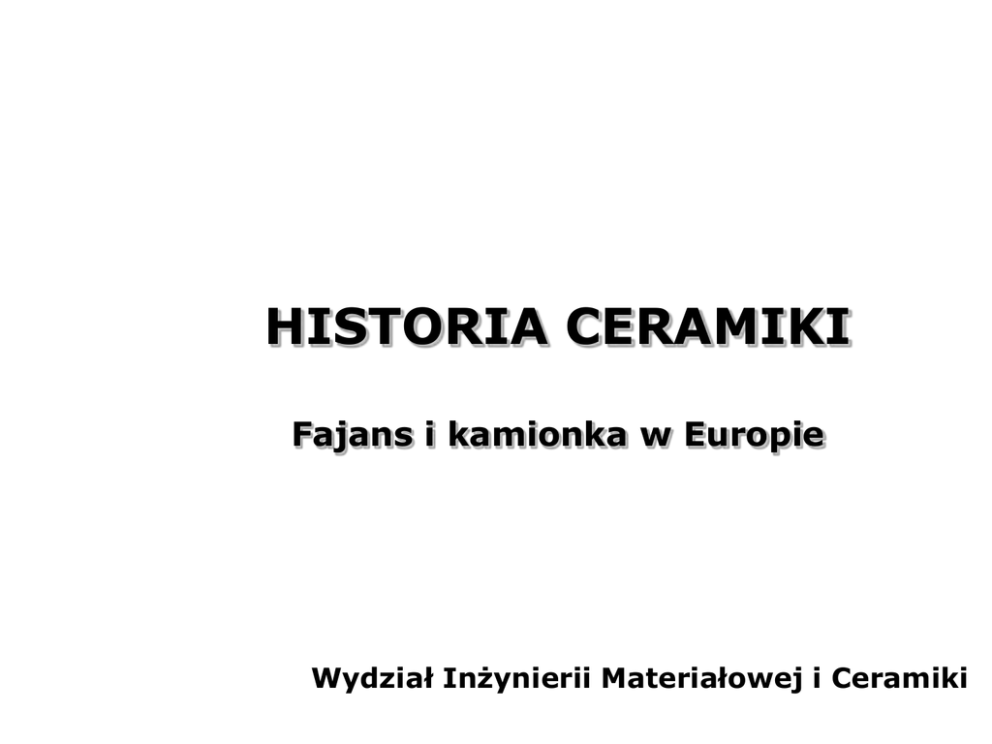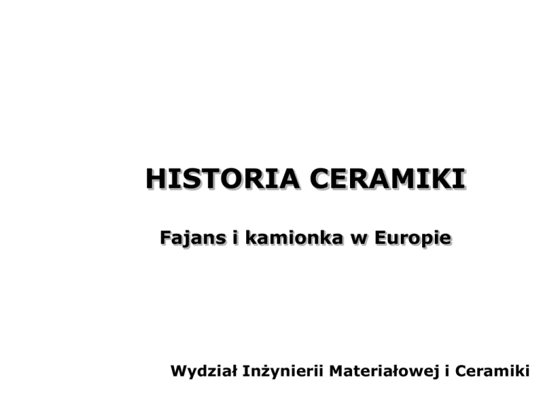 HISTORIA CERAMIKI Fajans i kamionka w Europie Wydział Inżynierii Materiałowej i Ceramiki Historię nowożytnej ceramiki na terenie Europy rozpoczyna wywodzący się z kultury islamu fajans hiszpańsko-mauretański. • religia islamska rozprzestrzeniła się na tereny Bliskiego Wschodu, Afryki Północnej i dotarła poprzez Gibraltar do Europy (Hiszpania południowa), • ceramika islamu charakteryzowała się odrębnym stylem: naczynia pokryte kryjącym, białym szkliwem cynowym barwnie malowane, • do Europy dotarły wraz z ceramiką arabską nieznane techniki zdobienia - szkliwa lustrowe oraz sgraffito, • w XIII w. Marco Polo jako pierwszy przywiózł do Europy informacje o chińskiej porcelanie, Ceramika hiszpańsko-mauretańska • XIII w. – intensywny rozwój garncarstwa na terenie Hiszpanii (Malaga, Valencia, Manises, Paterna), • wyroby fajansowe pokryte szkliwem cynowym, malowane farbami w kolorze zielonym, fioletowym lub lustrem, XVII w. Fajanse włoskie • fajanse z Hiszpanii poprzez Majorkę (z jęz. włoskiego MAJOLIKA) docierają do Włoch, • wiek XIII i XIV wspaniały rozwój malarstwa włoskiego w Asyżu i Florencji (Giotto), • wyroby toczone na kole garncarskim oraz wygniatane w formach, • szkliwa cynowe, • malarstwo na podkładzie ceramicznym w pięciu charakterystycznych kolorach: fiolet manganowy, żółcień antymonowa, zieleń miedziowa, czerwień żelazowa, błękit kobaltowy, Fajanse włoskie Urbino, Wenecja – styl odpowiadający /istoriato/ Sienna – wyroby z dekoracją >alla porcellana< Florencja – warsztat della Robbia Faenza – wyroby białe, tzw. bianchi Fajanse włoskie Wyroby pokrywano kryjącym szkliwem cynowym. Zdobiono podszkliwnie i naszkliwnie: • tlenkiem manganu (barwa fioletowa, purpurowa), • tlenkiem miedzi (barwa zielona), • tlenkiem kobaltu (barwa niebieska), • antymonem (barwa żółta) • i tlenkami żelaza (barwa pomarańczowo-czerwona). Fajanse włoskie - Florencja Warsztat della Robbia: • Luca 1400-1482r. • Andrea (bratanek) 1435-1525r. • Girolamo (syn Andrei) 1488-1566r. • Giovanni (syn Andrei) 1469-1529r. Fajanse włoskie - Siena Alla porcellana, początek XV w. Fajanse włoskie - Urbino 1540-1580 r. Fajanse włoskie - Urbino 1520-1537 r. mistrz Cipriano Piccolpasso – twórca nazwy majolika Fajanse włoskie Popularyzacja nazwy majolika dla fajansów z Hiszpanii a następnie rodzimych włoskich wyrobów. Majolika – fajans o bogatym, barwnym zdobieniu. Fajanse włoskie - Faenza Francuzi od nazwy Faenza nazywali kupowane wyroby fajansem. FAENZA=FAJANS Fajans to tworzywo nasiąkliwe, kruche i nieprzeświecalne o barwie kremowej, jasno szarej, różowej do czerwono-brązowej. Pokrywany szkliwem przeźroczystym lub kryjącym. Wypalany na biskwit w temperaturze wyższej (1200oC) niż na ostro ok. 900oC. MAJOLIKA to też FAJANS Fajanse włoskie - Faenza Bianchi z Faenzy, początek XVII w. Epoka renesansu przynosi (XV w.): • intensywny rozwój nauk humanistycznych, przyrodniczych i technicznych, • wznowienie kontaktów z innymi państwami (import i eksport), • rozpoczynają się starania nad wytworzeniem porcelany, Pierwsze próby otrzymywania porcelany w Europie Włochy: Ferrara /na dworze Alfonsa I d’Este/ Florencja /na dworze Medyceuszy/ - Książę Franciszek I, lata 1547-1587 Francja: St. Cloud, Lilly, Chantilly, Holandia: Delft, Pierwsze próby otrzymywania porcelany w Europie Skład „porcelany” medycejskiej: • glina z Vicenzy, • piasek, • cyna lub ołów, Obecnie można powiedzieć, że był to rodzaj porcelany miękkiej Pierwsze próby otrzymywania porcelany w Europie „Porcelana” medycejska ~1580r. Fajanse francuskie Pierwotnie import z Włoch głównie z Faenzy Główne ośrodki produkcji fajansu: • Lyon (ok. 1550 - 1770), • Montpellier (koniec XVI-XIX w.), • Nevers (1589-…), • Rouen (1696-…), • Monstiers (XVIII w.), • Quimper (1708-…), Fajanse holenderskie • Rok 1602 – Zjednoczona Wschodnioindyjska (Holandia), Kompania • import porcelany z Dalekiego Wschodu (Chiny, Japonia), biało-niebieskie naczynia porcelanowe, • naczynia z czerwonej kamionki – czajniki, czarki i spodki, • Rok 1615 – wielka aukcja porcelany w Delft; ważny ośrodek produkcji kafli ceramicznych, Fajanse holenderskie - Delfty II połowa XVII wieku – Delfty wielkim ośrodkiem ceramicznym. Produkcja naczyń fajansowych, krytych nieprzeźroczystym, białym szkliwem cynowym, maskującym barwę czerepu, zdobionych niebieską dekoracją (zwanych potocznie porcelaną). Fajanse holenderskie - Delfty 1690 r. ok. 1700 r. ok. 1720 r. Fajanse holenderskie - Delfty • XVII/XVIII w. dekoracje barwne, • błękitne podszkliwne zdobienie tlenkiem kobaltu, • dekoracje farbami: fioletową (tlenek manganu), zieloną (tlenek miedzi lub tlenek żelaza), czerwieni (tlenek żelaza), Fajanse holenderskie - Delfty • naśladownictwo japońskiej porcelany Imari i chińskich rodzin szkliw, • na wyrobach pojawia się dodatkowa warstwa zewnętrzna szkliwa przezroczystego w celu uzyskania niezwykle lśniących i połyskliwych powierzchni, Fajanse holenderskie - Delfty w stylu famille rose 1760-1780 r. Fajanse holenderskie - Delfty Wyroby wypalano w ceramicznych, zamkniętych kasetach by chronić je przed dymem otwartego ognia. Wyroby formowano: • na kole garncarskim, • odciskano w formach (bardziej skomplikowane kształty), • ok. 1800 roku – odlewano w rozkładanych formach gipsowych, Fajanse holenderskie - Delfty Trzy podstawowe techniki dekoracji barwnej: • technika „wysokiego ognia” – dekoracja nakładana na wilgotne szkliwo, często kontury podkreślone ciemniejszą farbą i powierzchnia spryskana przezroczystym szkliwem ołowiowym, • wypalanie 800-1000oC, • barwa niebieska (Co), zielona (CuO), brązowa (Fe), żółta (Sb) i czerwona (Fe+ ochra + surowiec ilasty), Fajanse holenderskie - Delfty Trzy podstawowe techniki dekoracji barwnej: • technika „mieszana” – wpr