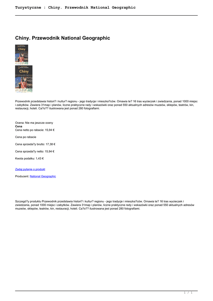 Turystyczne : Chiny. Przewodnik National Geographic