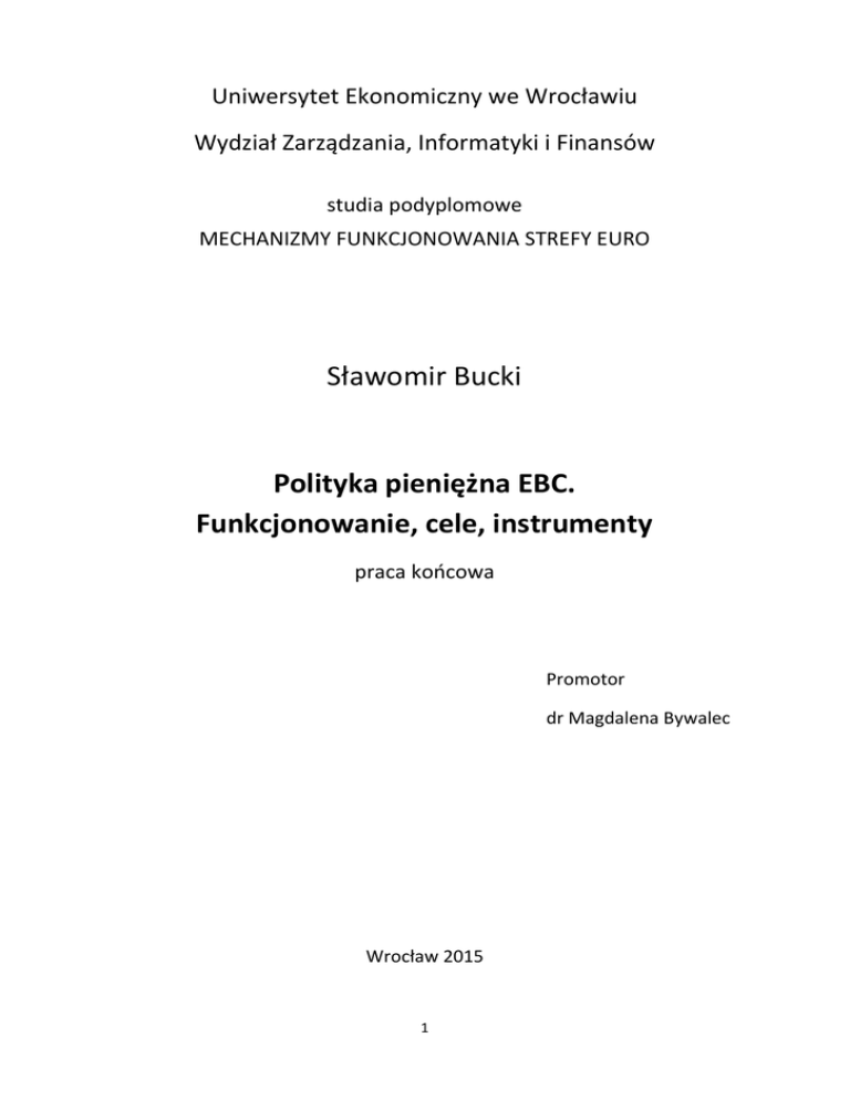 Sławomir Bucki Polityka pieniężna EBC. Funkcjonowanie, cele