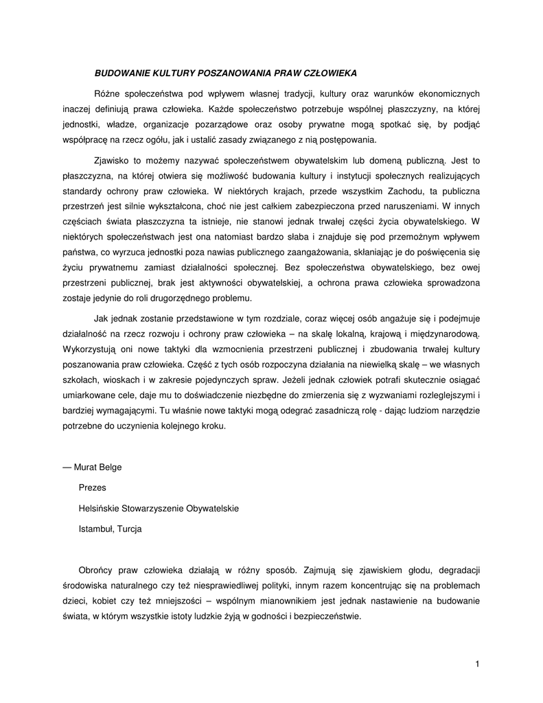 1 BUDOWANIE KULTURY POSZANOWANIA PRAW CZŁOWIEKA