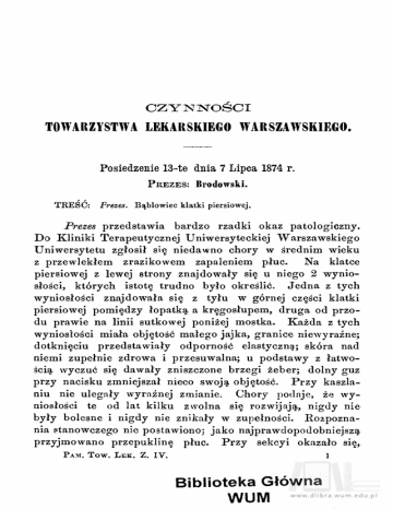warzystwie Lekarskiem Warszawskiem istnieć mający pod