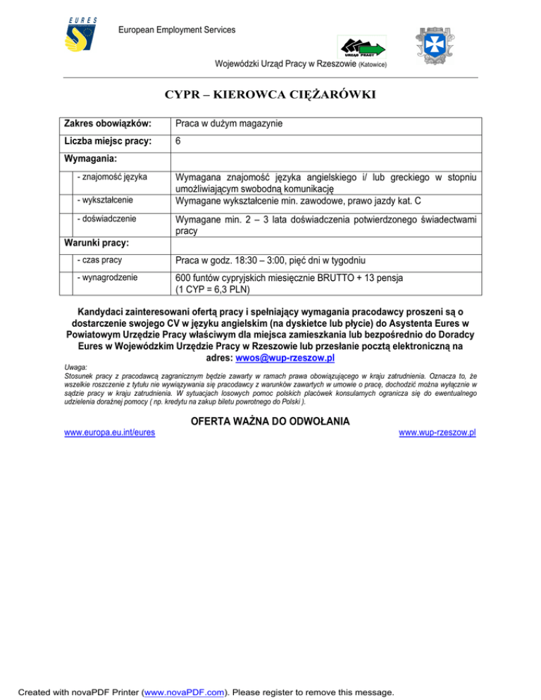 cypr – kierowca ciężarówki - Wojewódzki Urząd Pracy w Rzeszowie