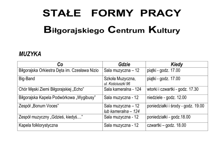 stałe formy pracy - Biłgorajskie Centrum Kultury