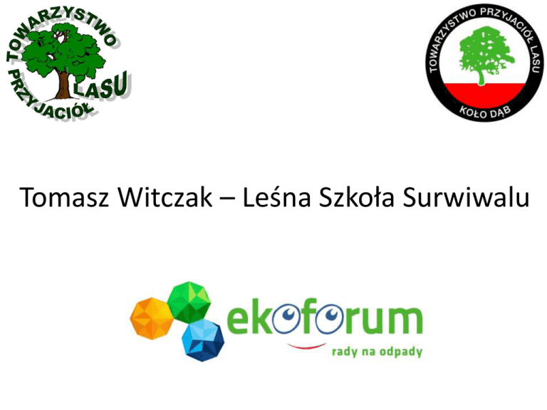 Tomasz Witczak – Leśna Szkoła Surwiwalu www.surwiwal.org.pl Leśna Szkoła Surwiwalu Współczesny surwiwal to umiejętne połączenie wiedzy, umiejętności i sprawności. Jedynie połączenie tych trzech części pozwoli nam swobodnie i bezpiecznie przemierzać leśne ostępy. Wiedza Wiedza to jedna z podstaw naszego przetrwania, bez wiedzy skazani jesteśmy na wiele niebezpieczeństw. Wiedza jest podstawą wszystkich naszych działań. Poznanie miejscowych gatunków fauny i flory, ukształtowania terenu ale również znajomość praw fizyki i chemii oraz zagadnień geografii uczyni nas pewnymi swych decyzji. Umiejętności Umiejętności to praktyczne zastosowanie nabytej wiedzy, tylko w parze z nią są prawdziwą uniwersalną wartością. Umiejętność posługiwania się kompasem, rozpoznawania jadalnych roślin, obserwacji zachowań zwierząt, budowy obozowiska czy wreszcie udzielania pierwszej pomocy to podstawy w czasie bliższych czy dalszych wypraw. Sprawność Trzecim elementem surwiwalu jest sprawność, to ona pozwala nam pokonywać leśne ostępy, próbować wspinaczki. Pozwala maszerować wiele godzin. Sprawność będzie nam też niezbędna dla zapewnienia sobie bezpieczeństwa. Nasza sprawność podnosimy poprzez lekcje wychowania fizycznego oraz zajęcia w klubach sportowych. Łucznictwo, pływanie, biegi na orientację i inne dyscypliny - to wspaniała okazja aby podnieść nasze możliwości ! W naszym programie wyróżniamy w kolejności najistotniejsze punkty : 1. Zasady bezpieczeństwa, dobór sprzętu, ubioru i ekwipunku, odpowiedzialność prawna organizatorów*. 2. Pierwsza pomoc przed medyczna w warunkach terenowych, zasady postępowania, alarmowania, kolejność podejmowanych kroków, samo ratownictwo – zajęcia warsztatowe*. 3. Poruszanie się w terenie, terenoznawstwo , postępowanie w wypadku zagubienia – zajęcia warsztatowe*. 4. Dzikie rośliny jadalne w lasach, zatrucia i pierwsza pomoc w zatruciach 5. Biwakowanie, zasady wypoczynku w lasach, budowa improwizowanych schronień, bezpieczeństwo pożarowe*. 6. Gry terenowe - zajęcia warsztatowe* 7. Wycieczki i rajdy przygodowe w tym zajęcia linowe*. 8. Bezkrwawe łowy – zajęcia podczas których tropimy, podchodzimy i fotografujemy zwierzęta*. *Zajęcia w formie warsztatów dla nauczycieli i wychowawców. www.surwiwal.org.pl