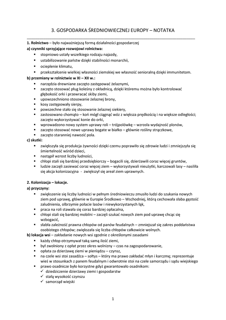 3. GOSPODARKA ŚREDNIOWIECZNEJ EUROPY – NOTATKA