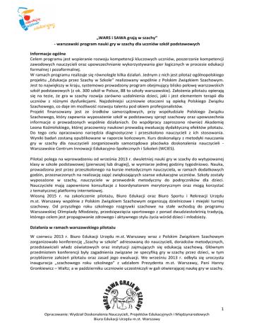 1 „WARS i SAWA grają w szachy” - warszawski program nauki gry w