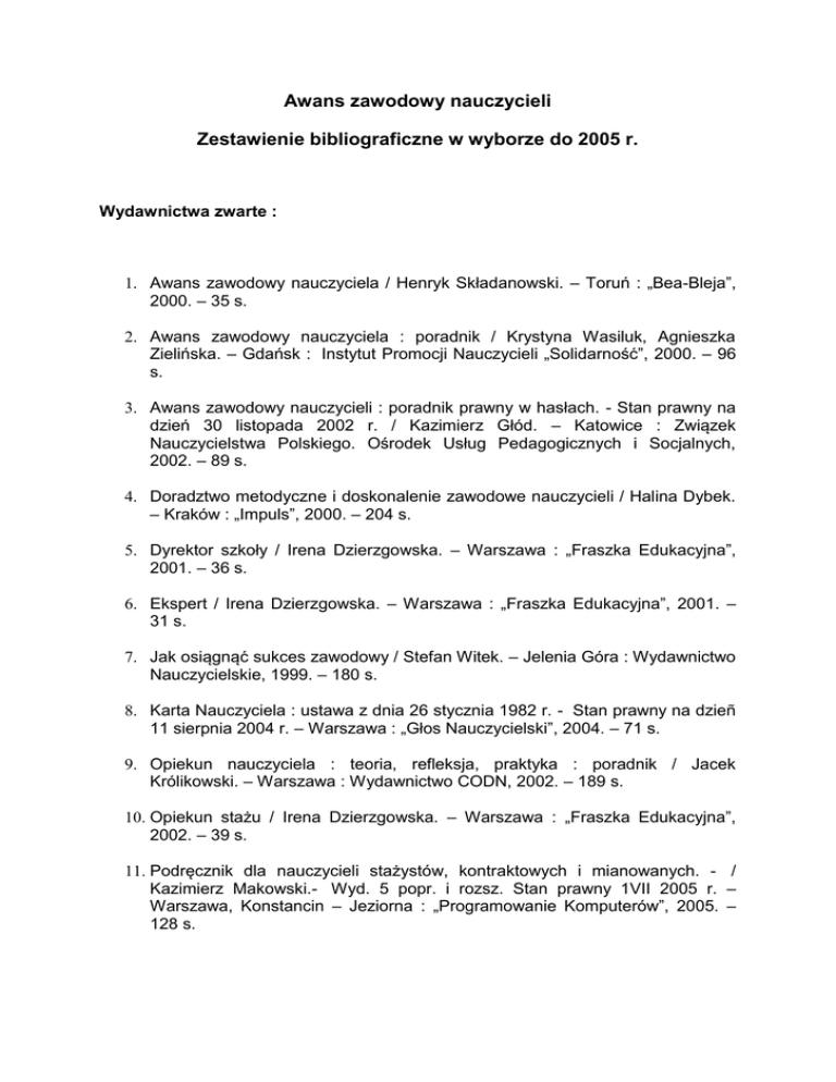 Awans zawodowy nauczycieli Zestawienie bibliograficzne w
