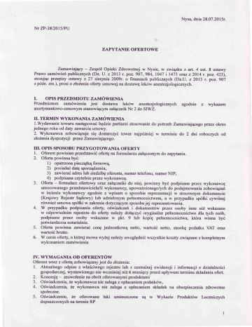 Nysa, dnia 28.07 .2015r. Nr ZP-3812015/PU ZAPYTA}IIE