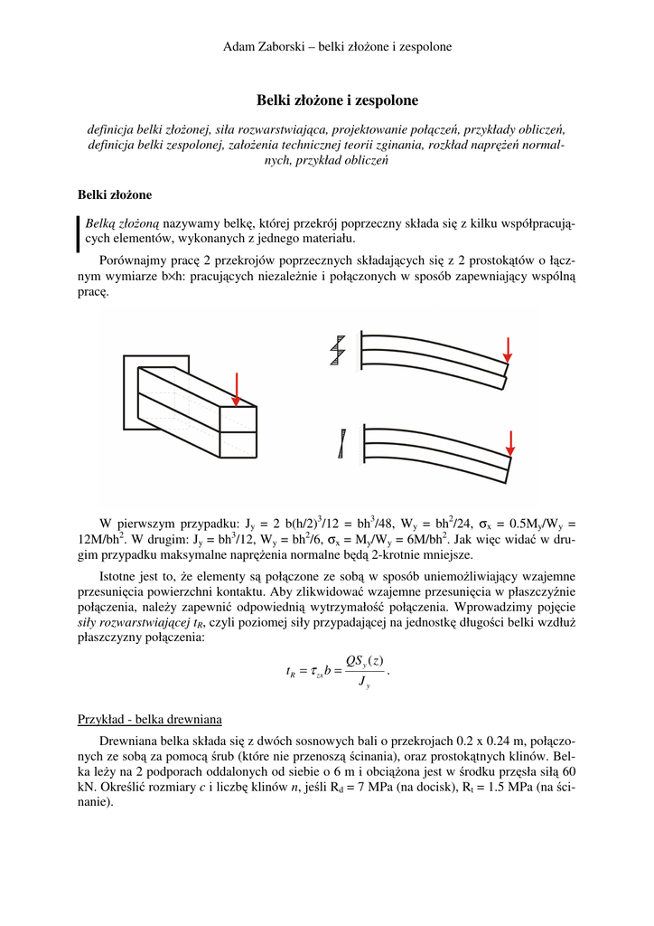 Belki złożone i zespolone - Zakład Wytrzymałości Materiałów PK
