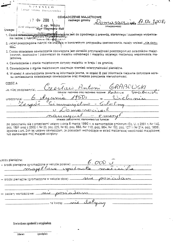 Grabowski Czesław - oświadczenie majątkowe za 2007r
