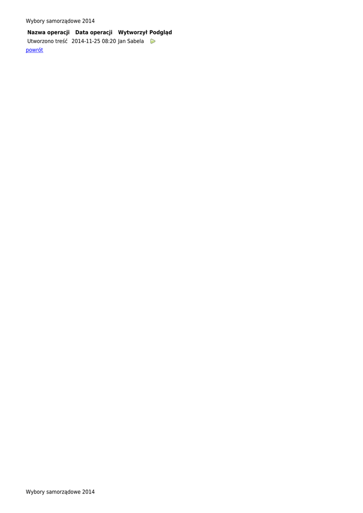 Wybory samorządowe 2014 Nazwa operacji Data operacji Wytworzył Podgląd Utworzono treść 2014-11-25 08:20 Jan Sabela powrót Wybory samorządowe 2014