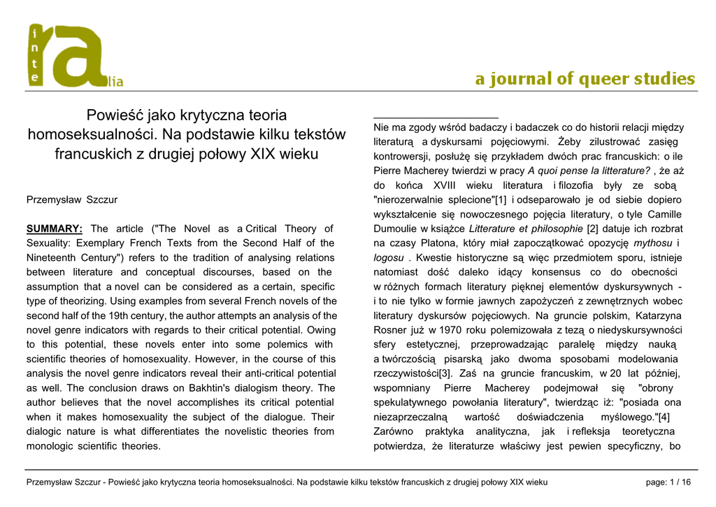 Powieść jako krytyczna teoria homoseksualno¶ci. Na