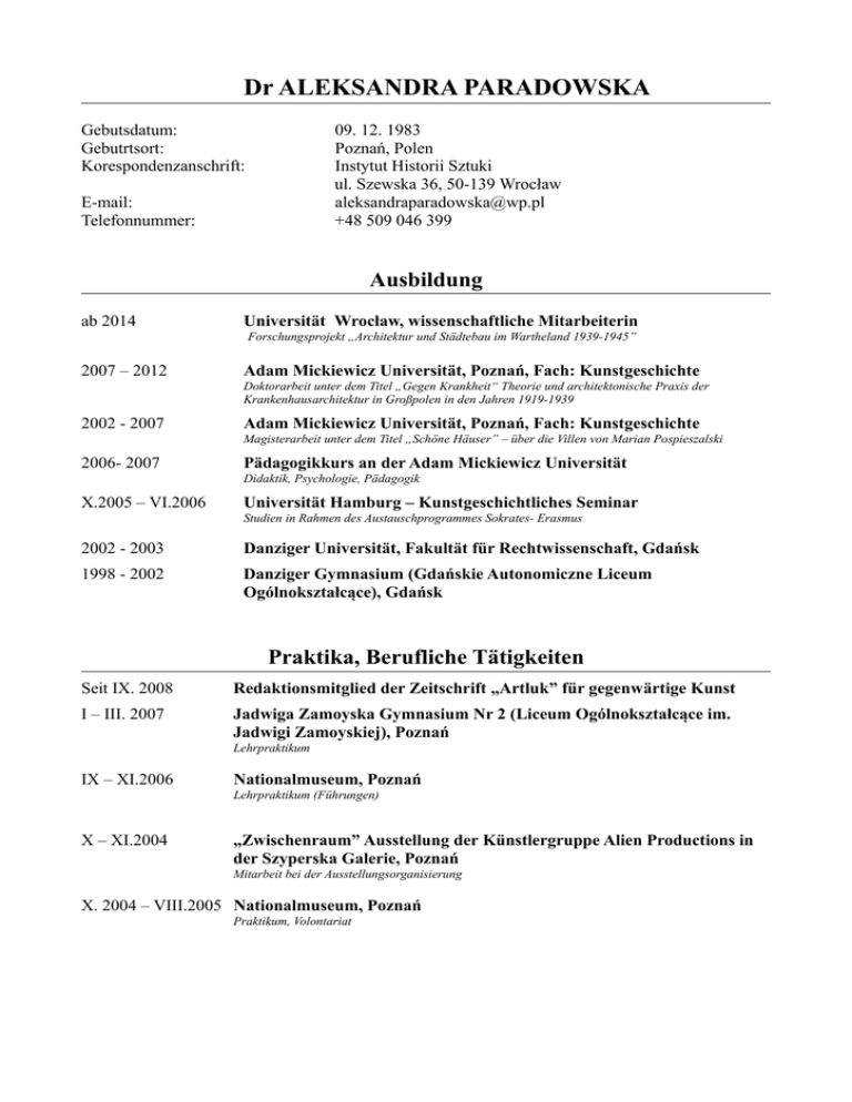 CV deutsch - Instytut Historii Sztuki UWr